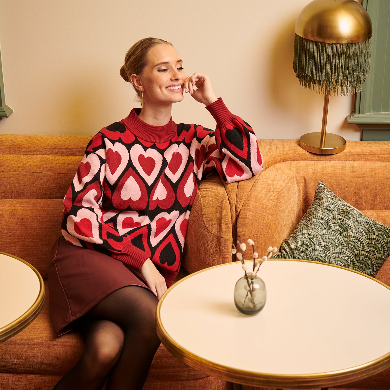 25529 Gebreide Trui Met LippEnprInt in Bruin en Cognac | Brown - Cognac