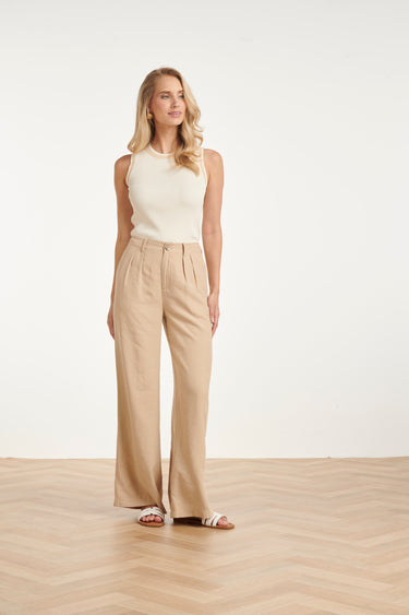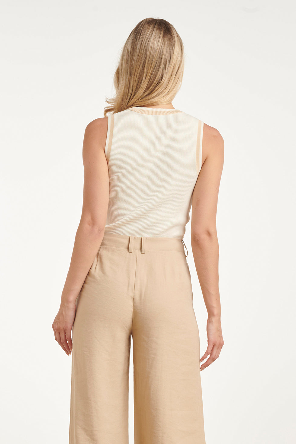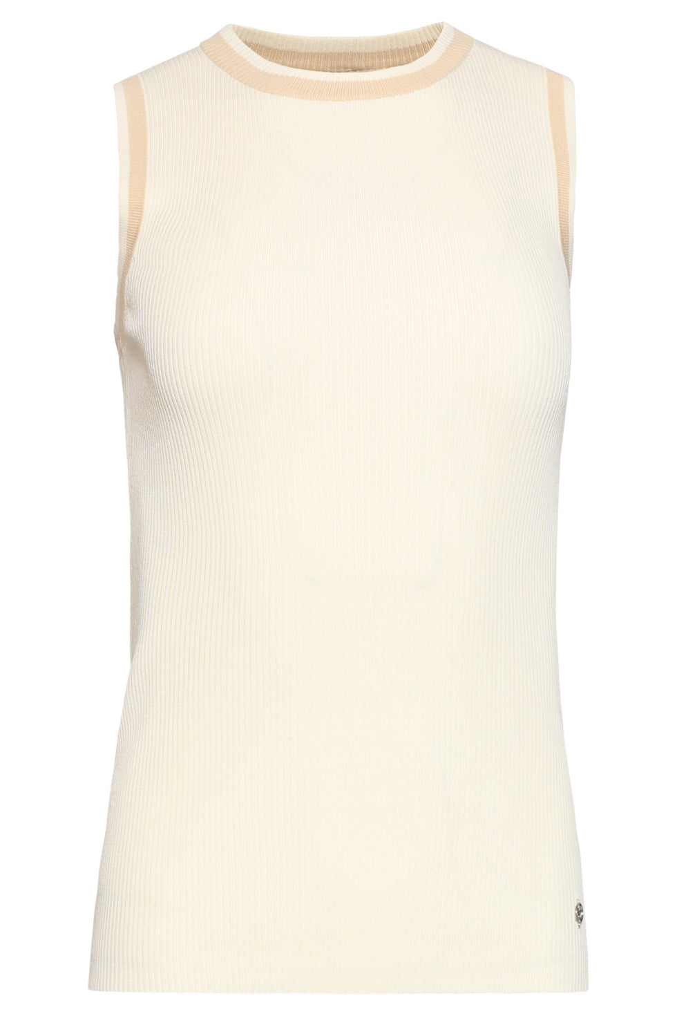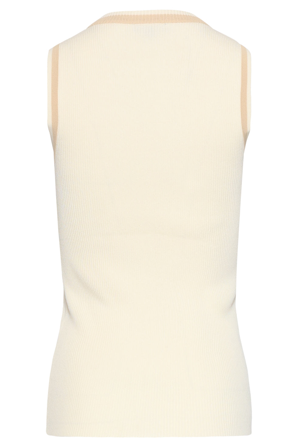 Mouwloze Ribgebreide Top met Contrastbies | Off White - Dark Sand