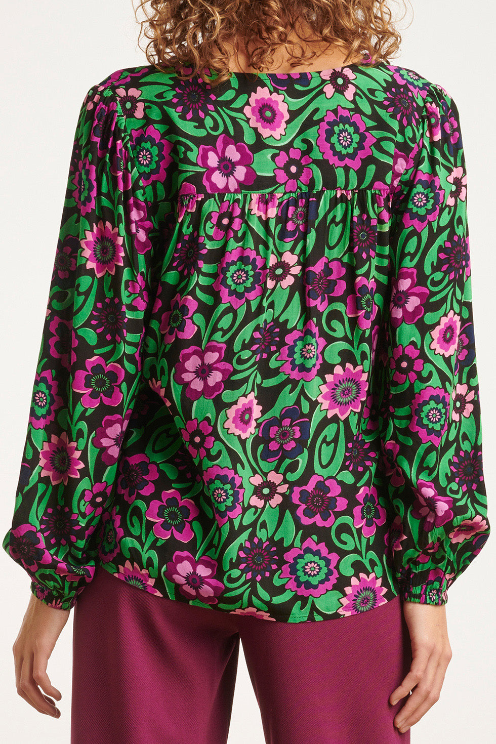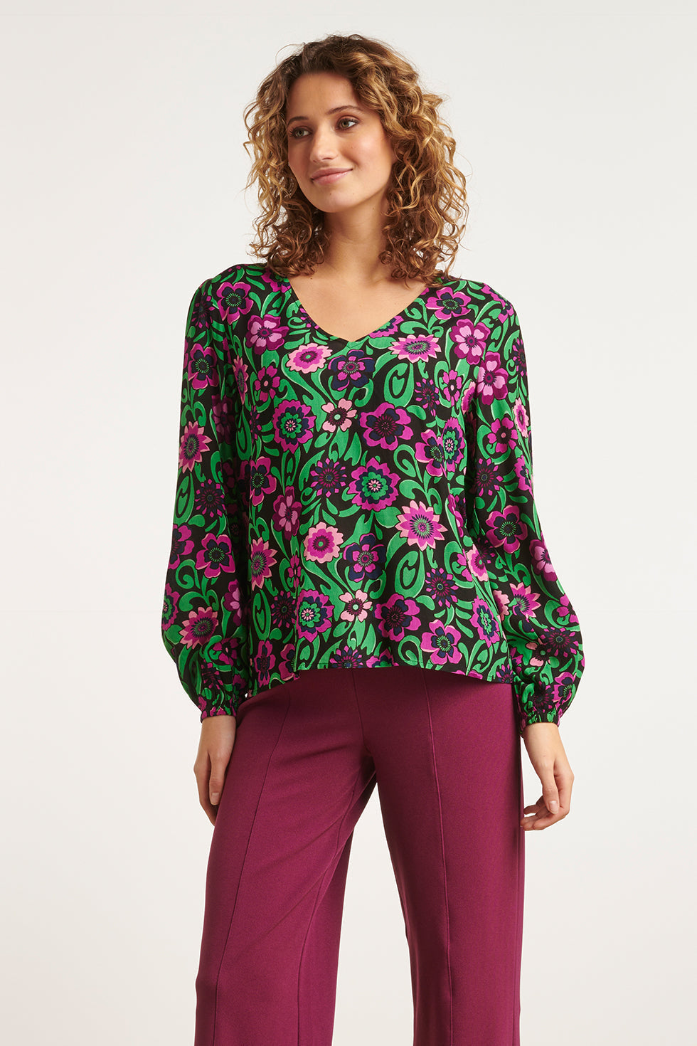 23671 Dames Top Met Bloemenprint Paarse | Black - Muticolour
