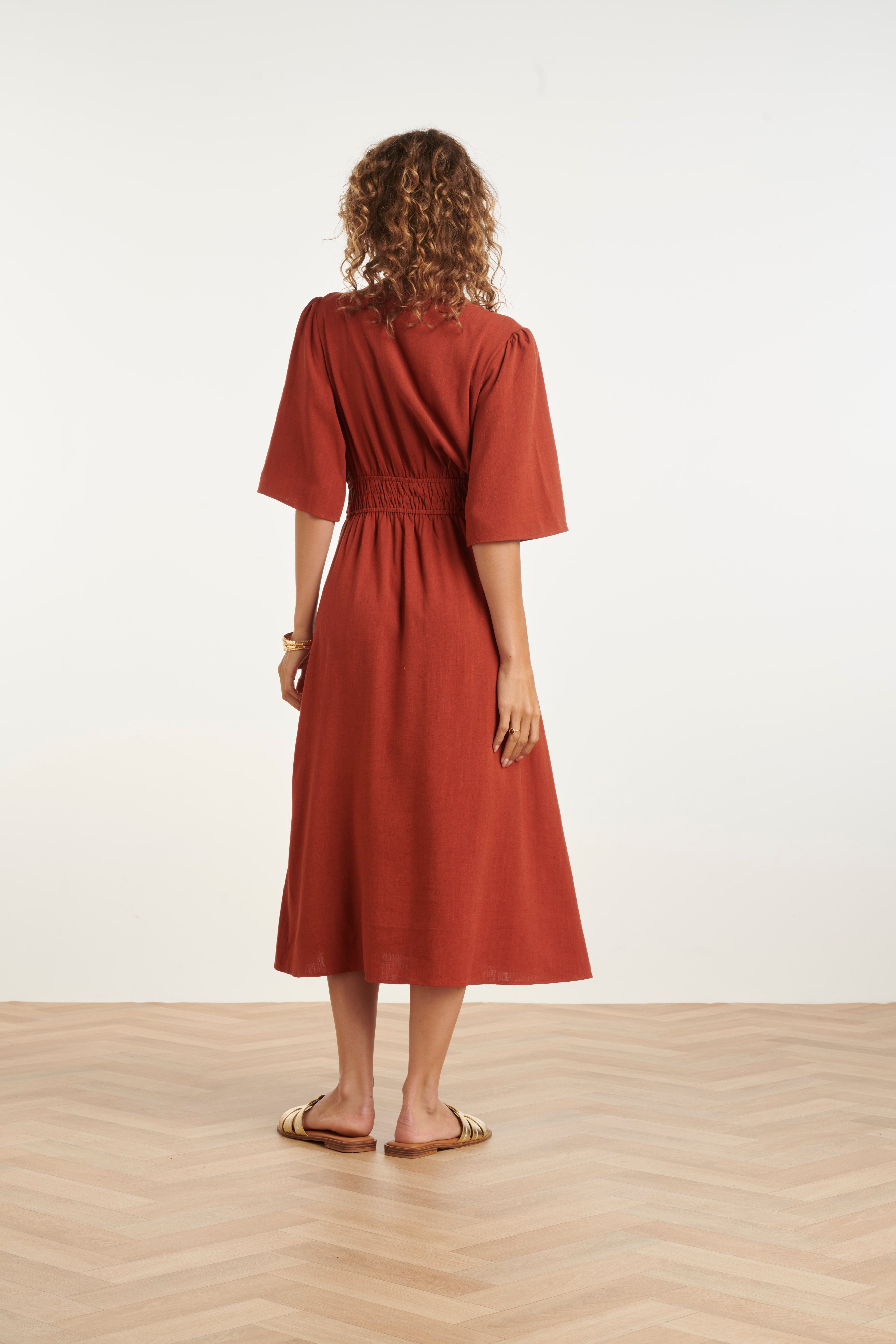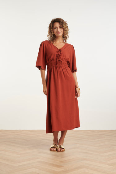 Luchtige Linnen Midi-Jurk Met Vetersluiting | Brique