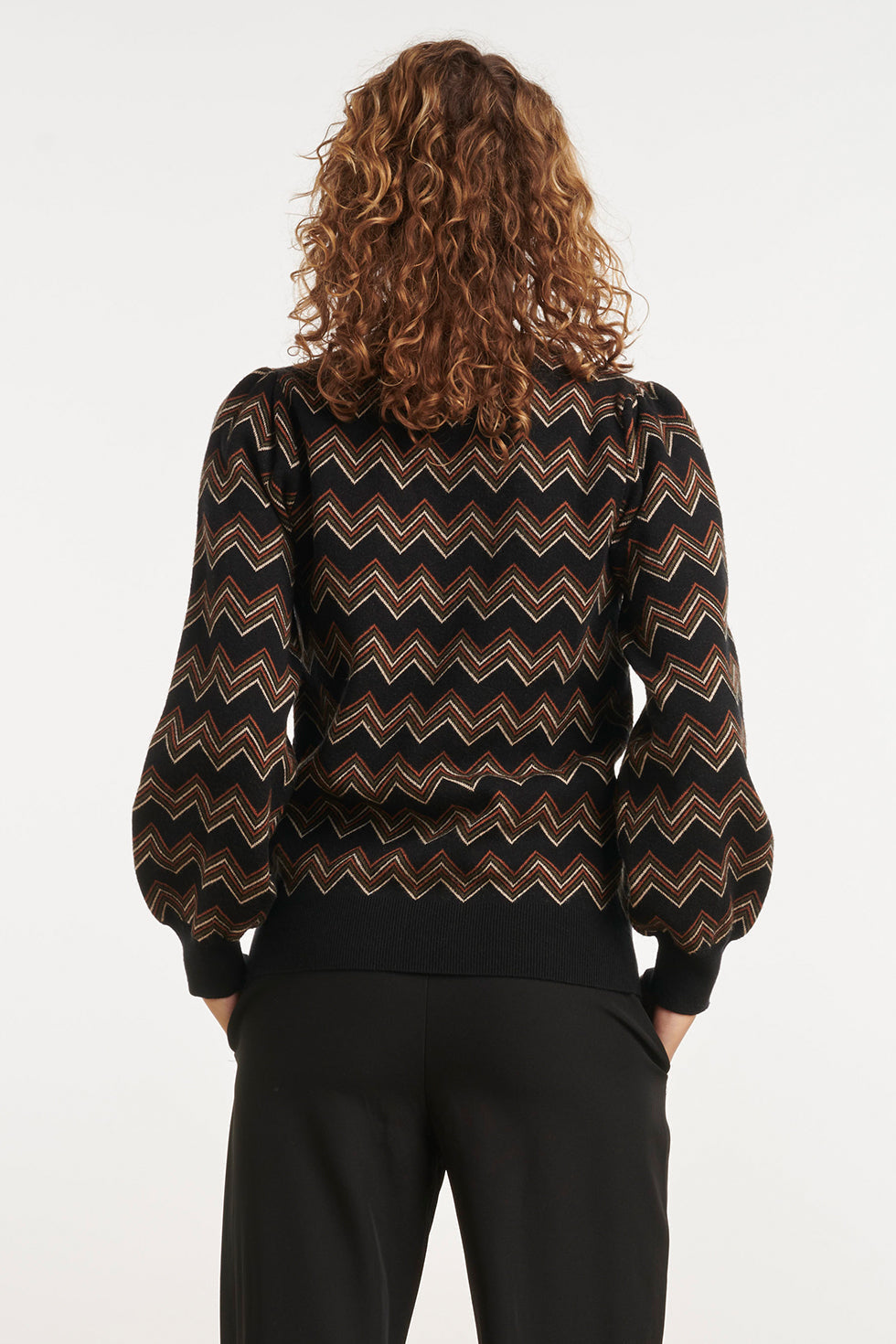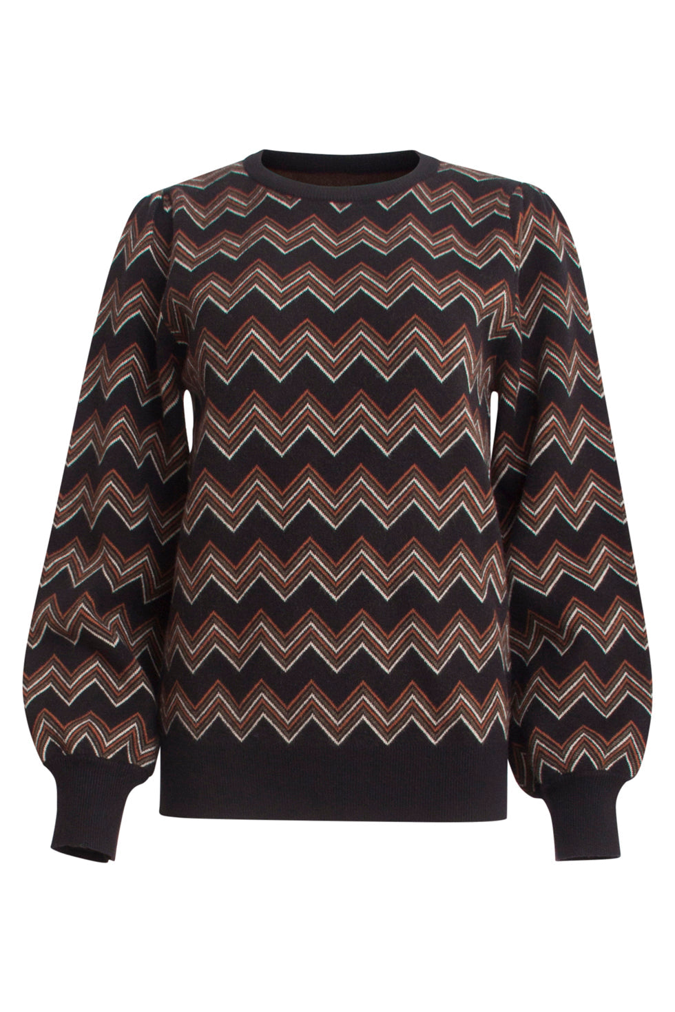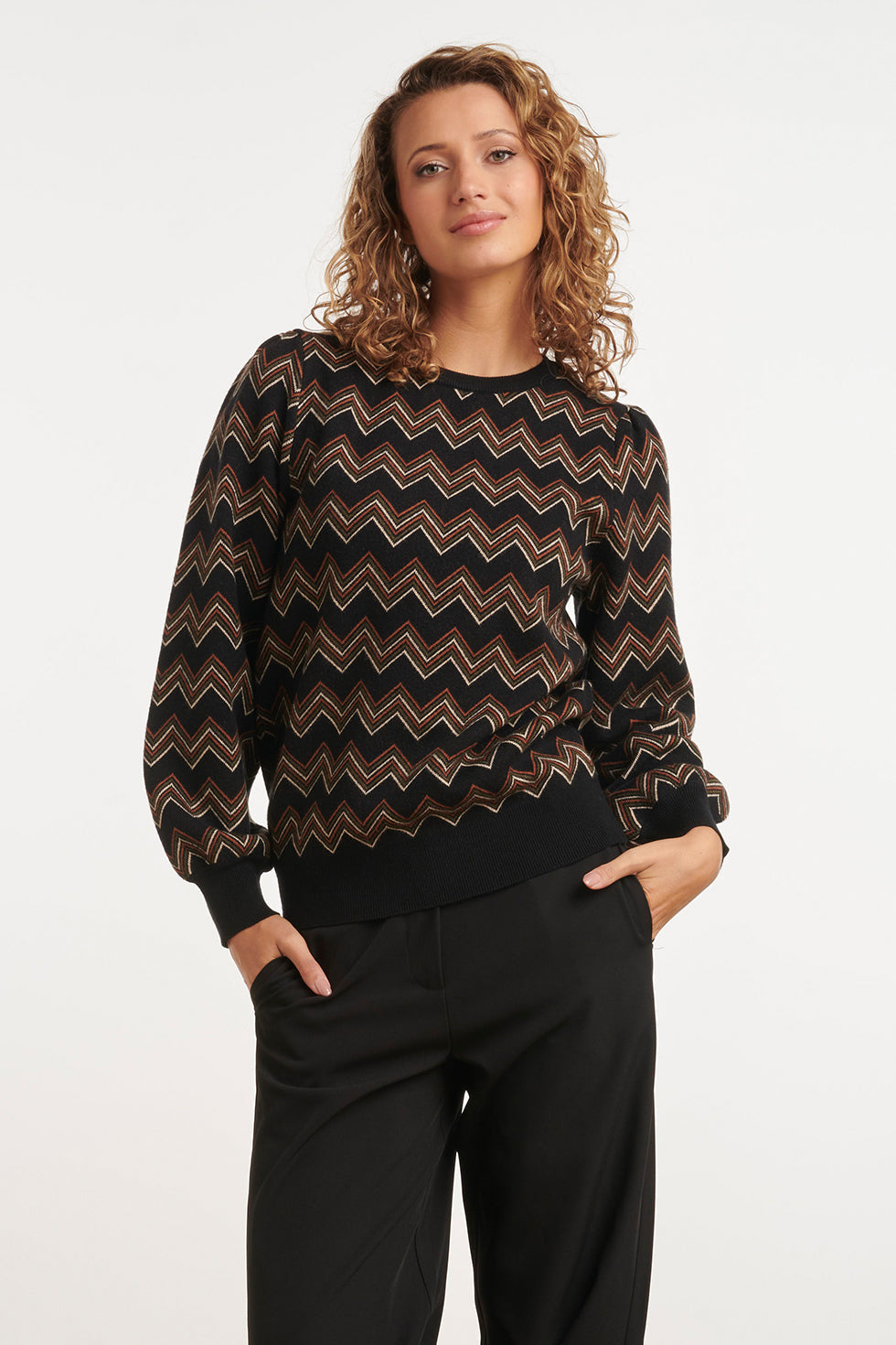 24901 Multicolour Zigzagprint Gebreide Top | Black - Brown