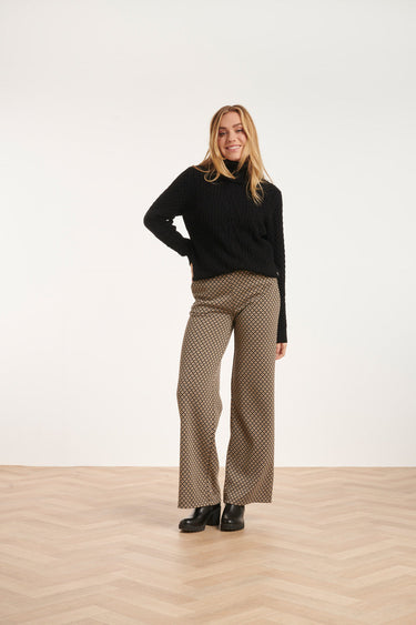 24577 Wijde Broek Met Grafische Bloemprint | Black - Sand