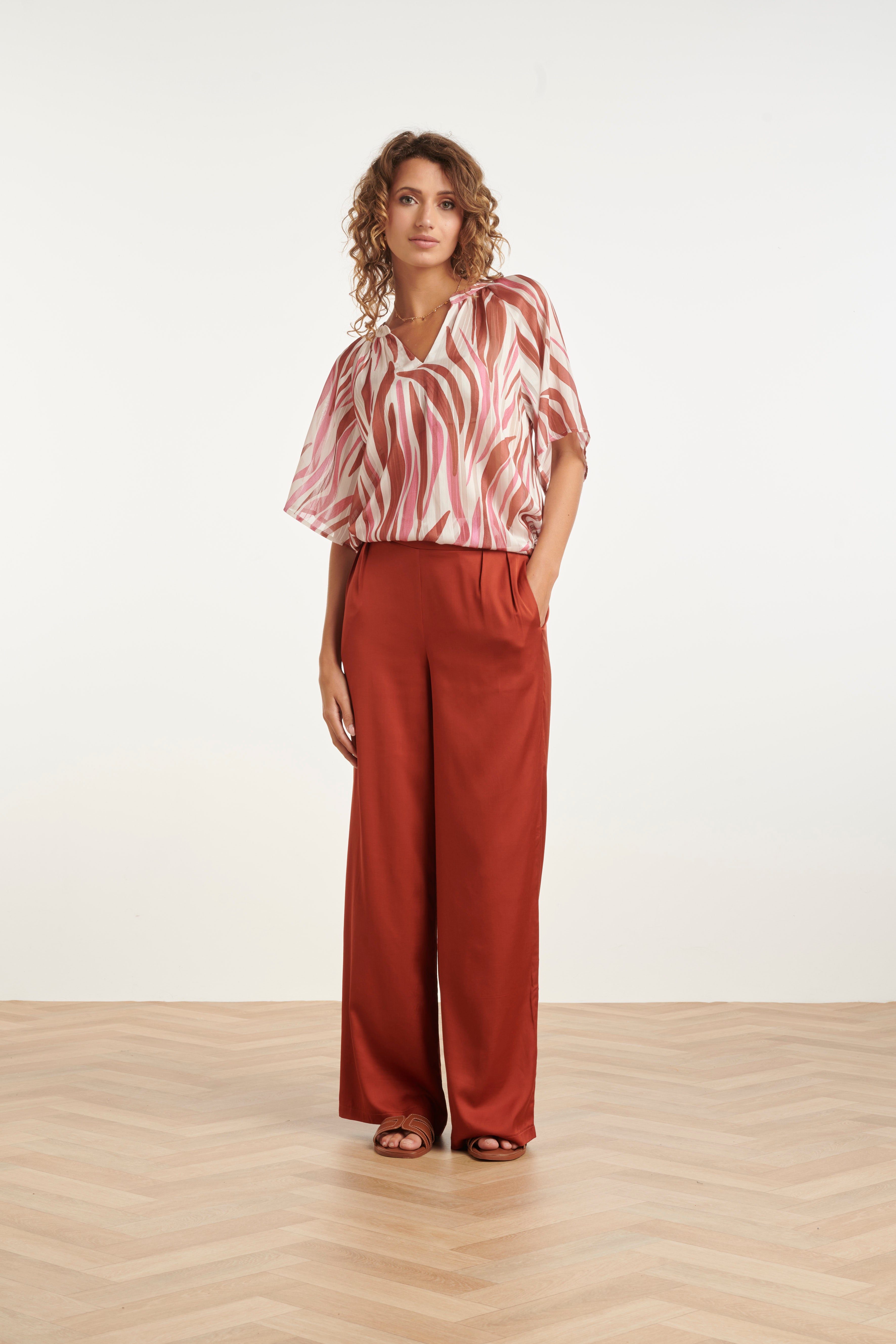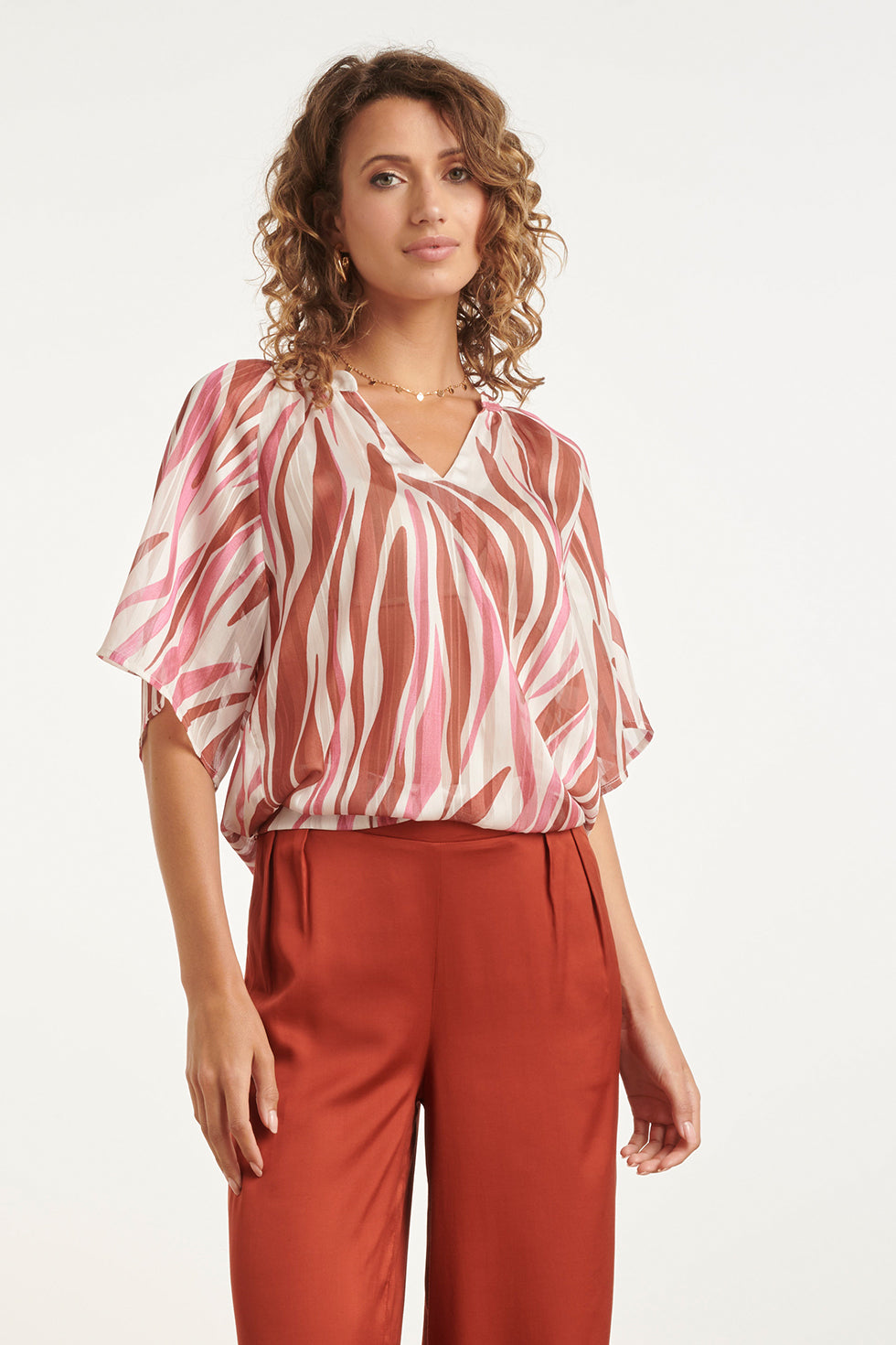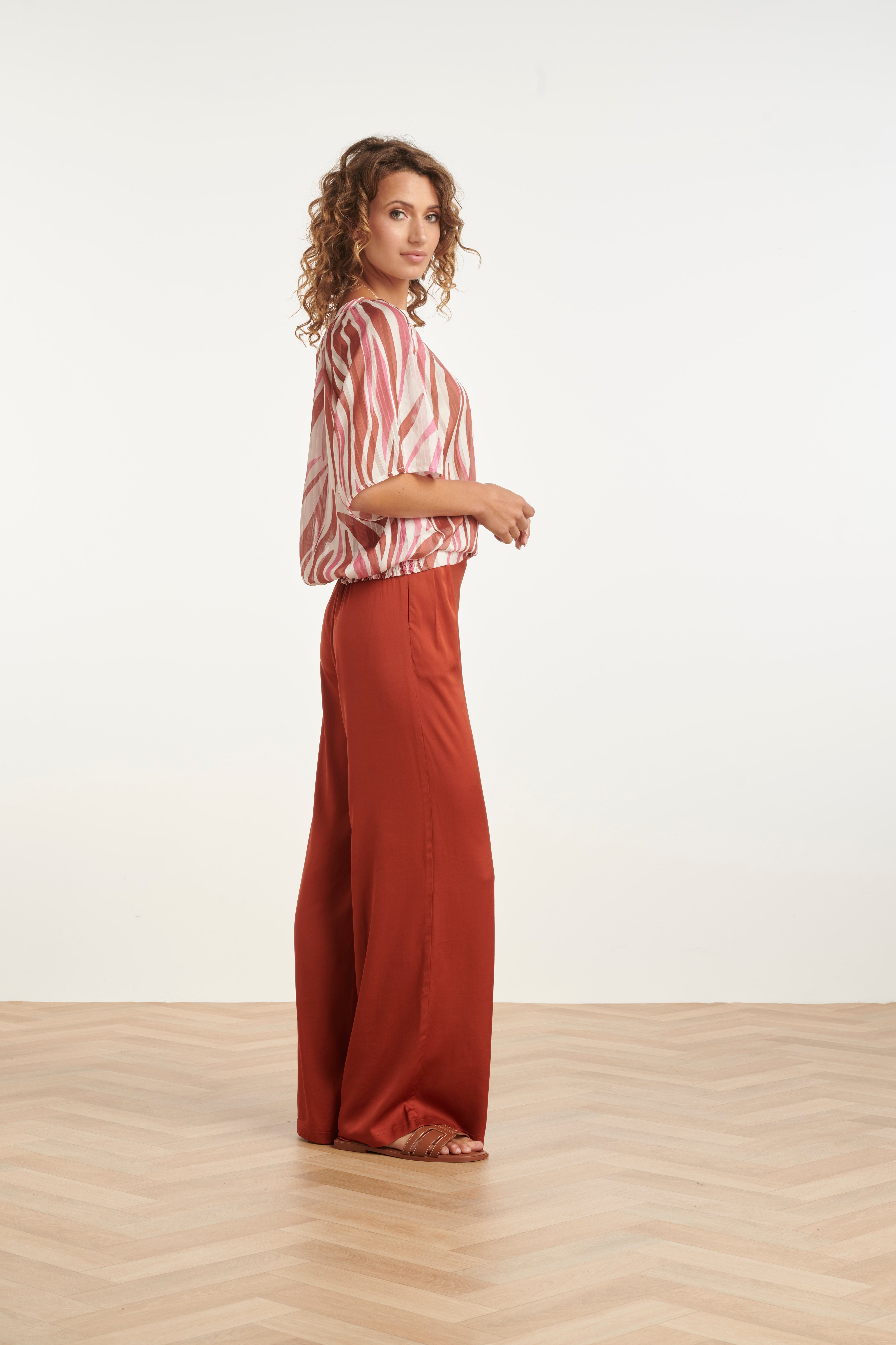 Wijde Top Met Roze Zebra-Style Print | Brique - Old Pink