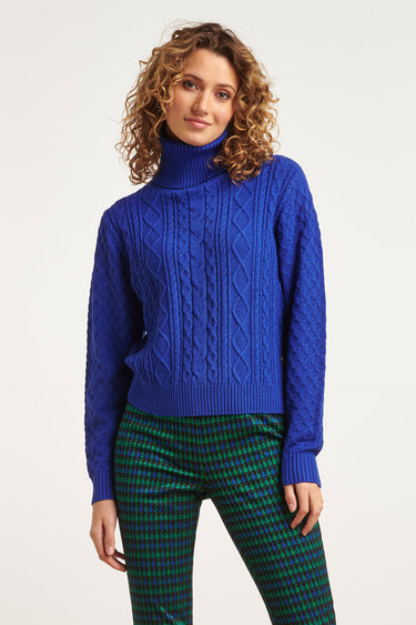 23604 Strukturierter gestrickter Rollkragenpullover Blau
