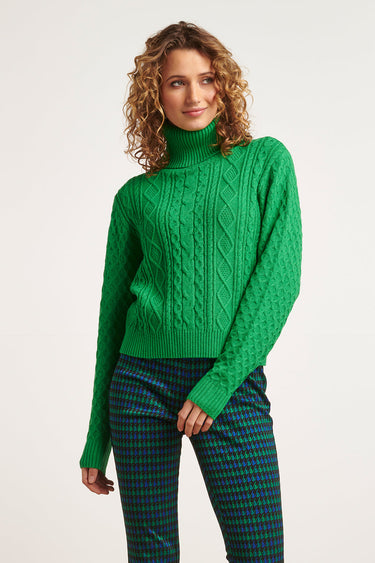 23604 Strukturierter gestrickter Rollkragenpullover Grün