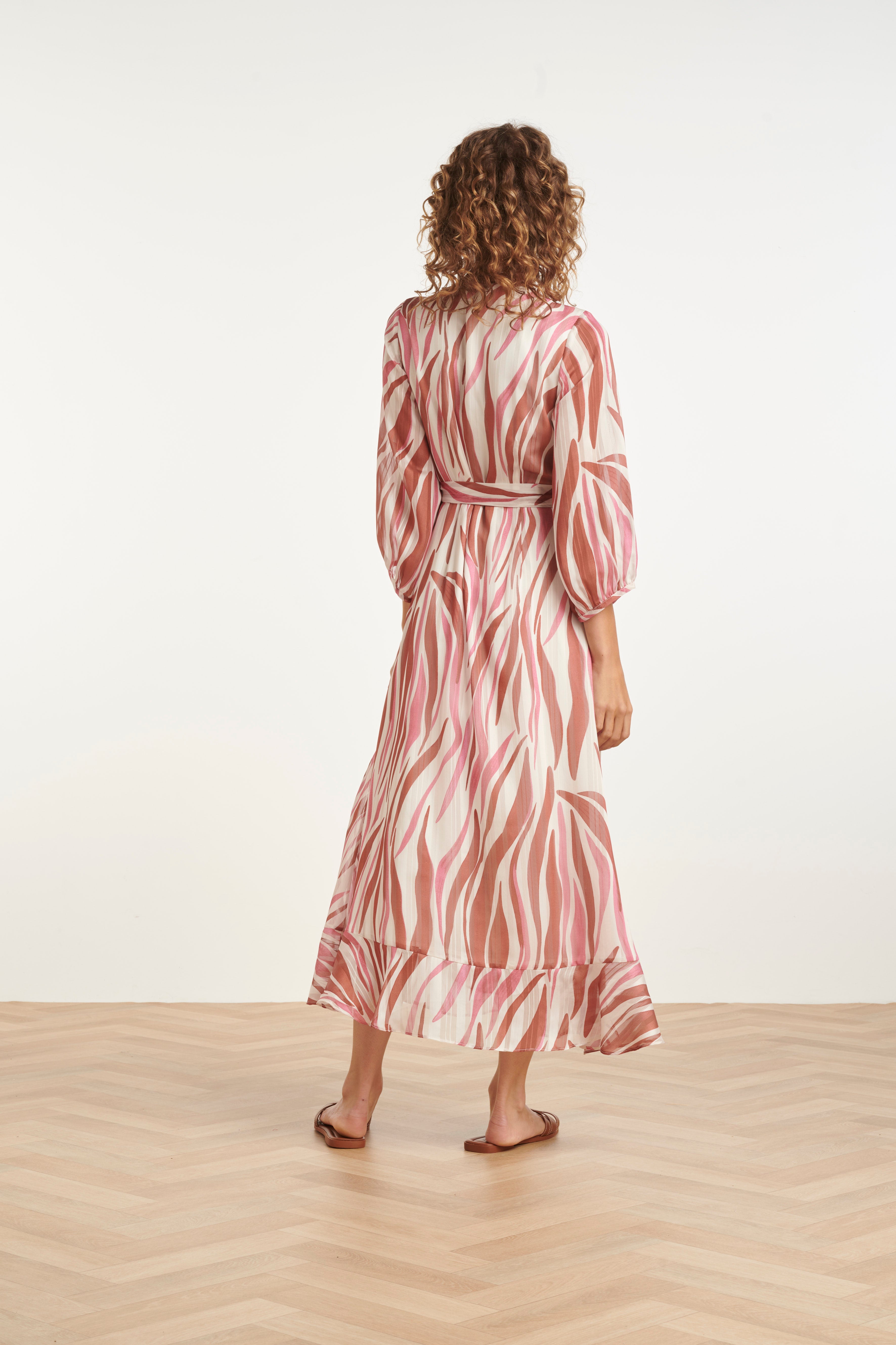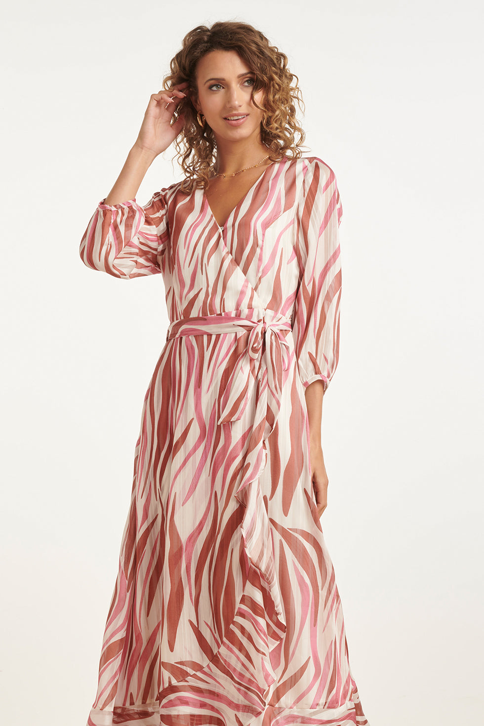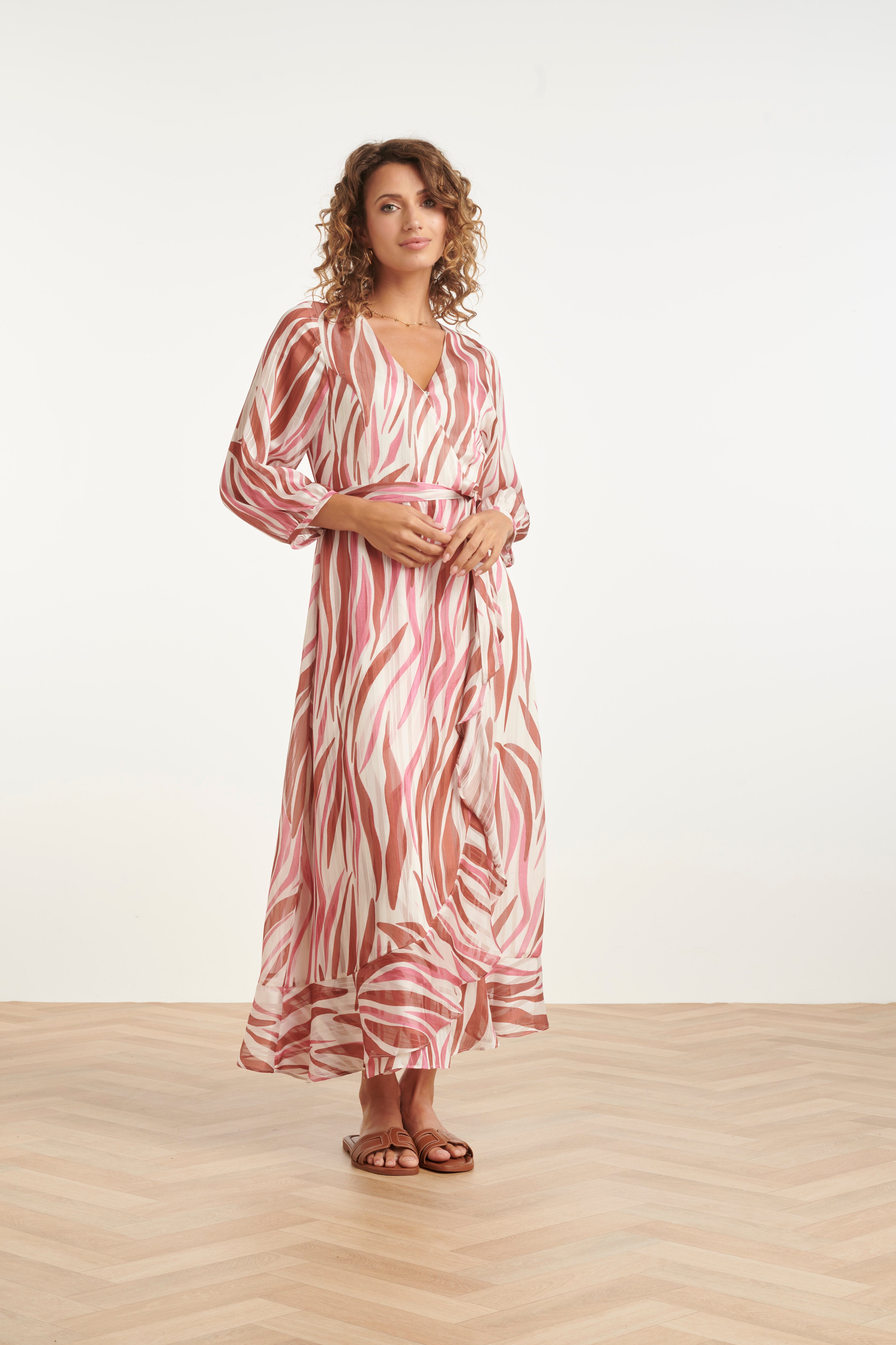 Maxi Overslagjurk Met Roze Zebra-Style Print | Brique - Old Pink