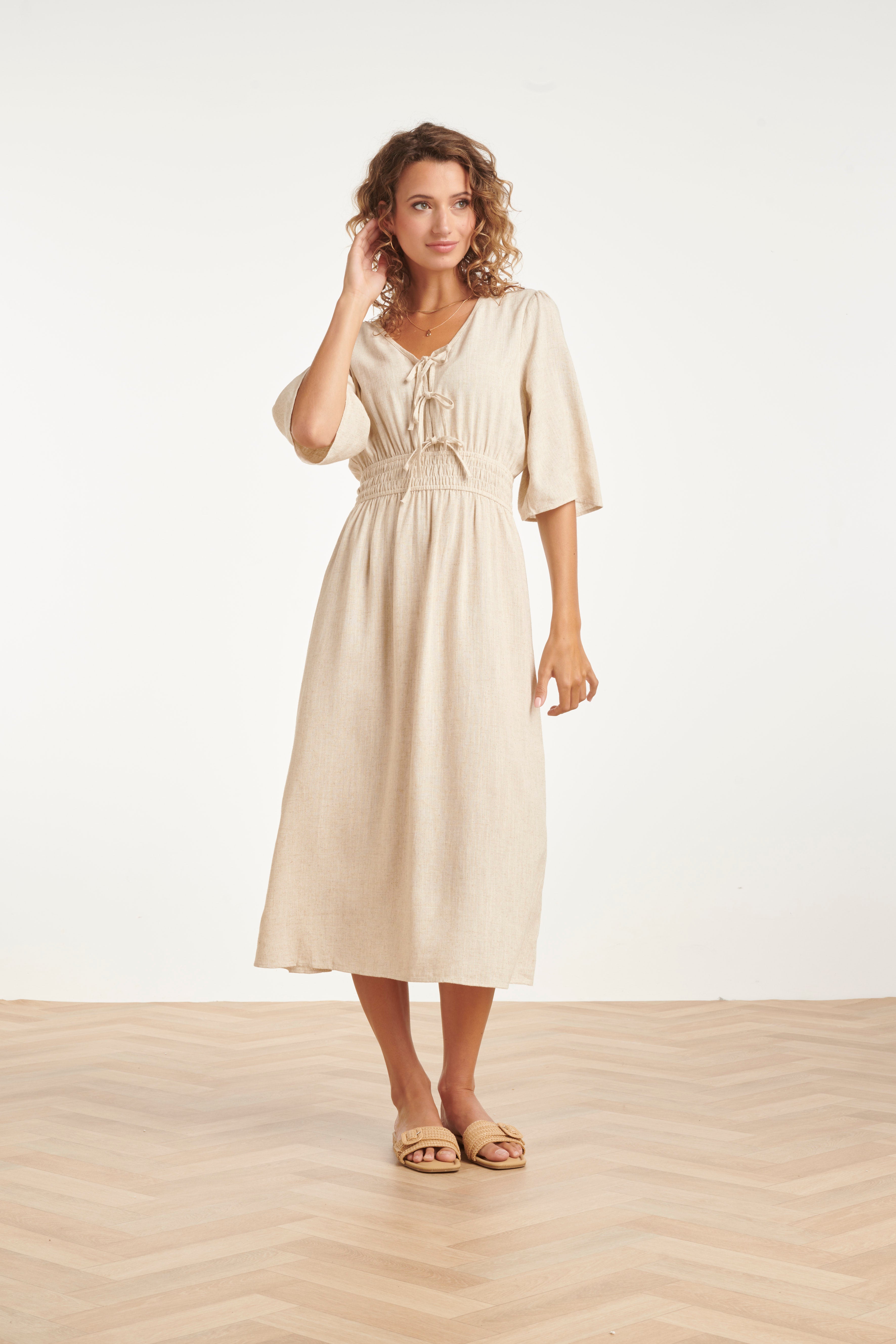 Luchtige Linnen Midi-Jurk Met Vetersluiting | Sand