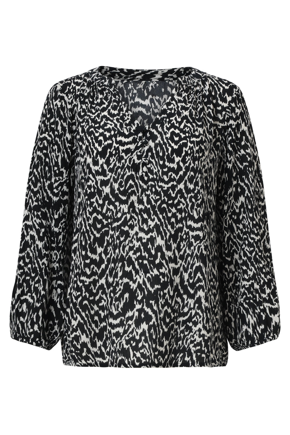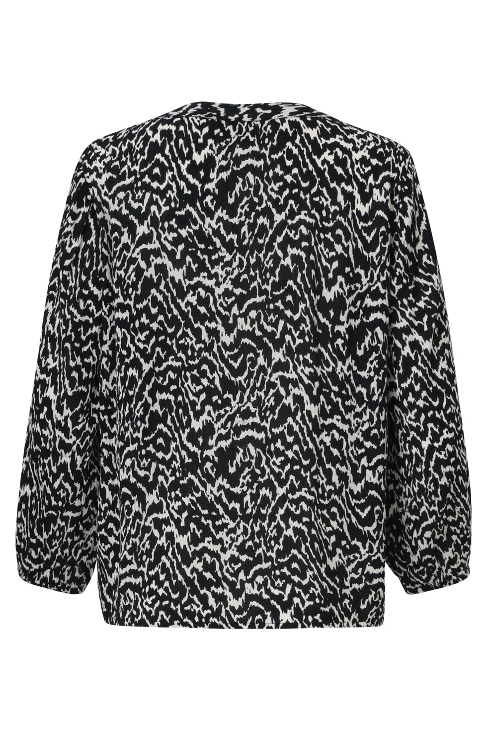 25713 Elegante Zwart En Wit Abstracte Top | Off White - Black