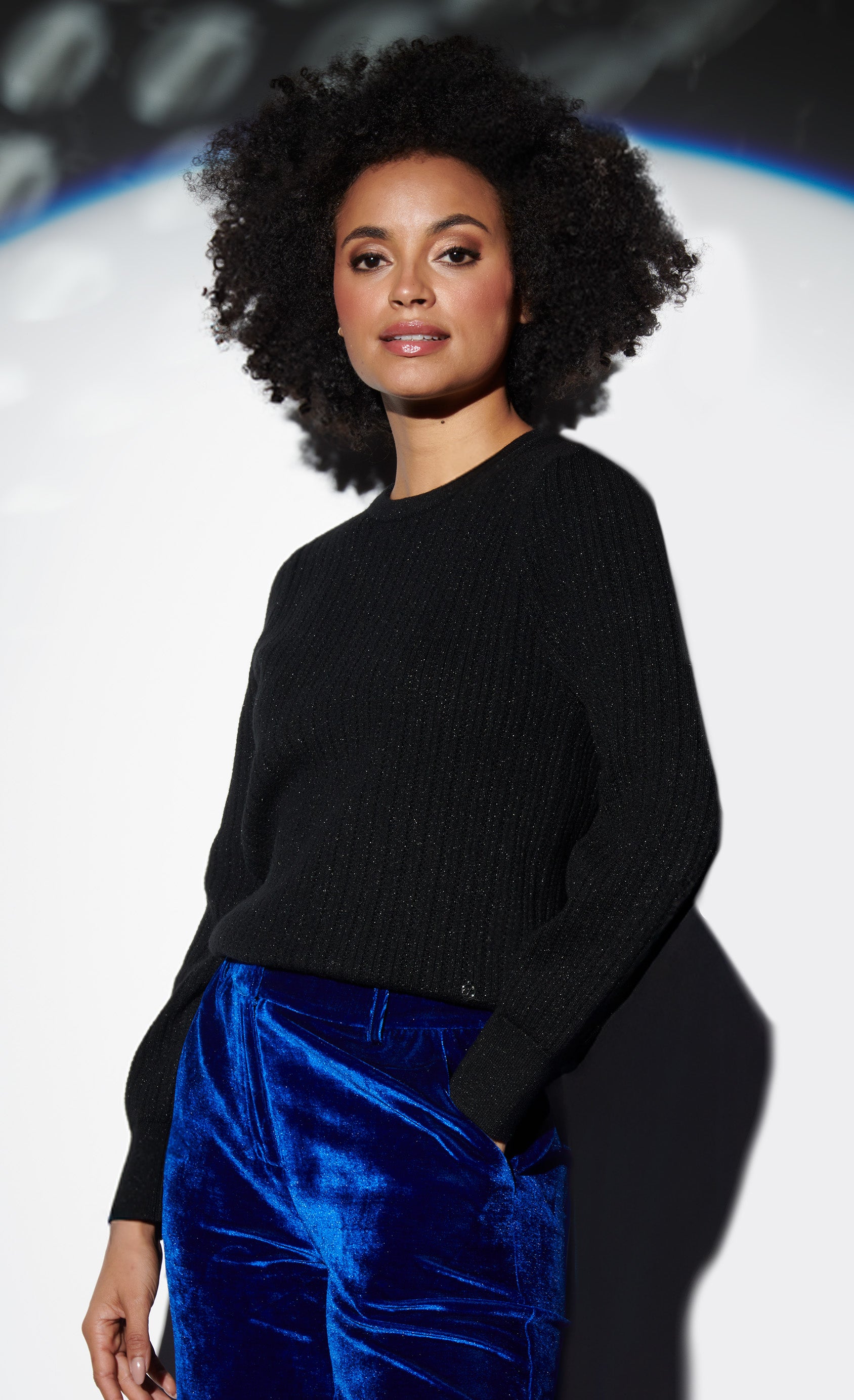 25533 Gebreide Haartjes Knit Top In Zwart En Army | Black - Army