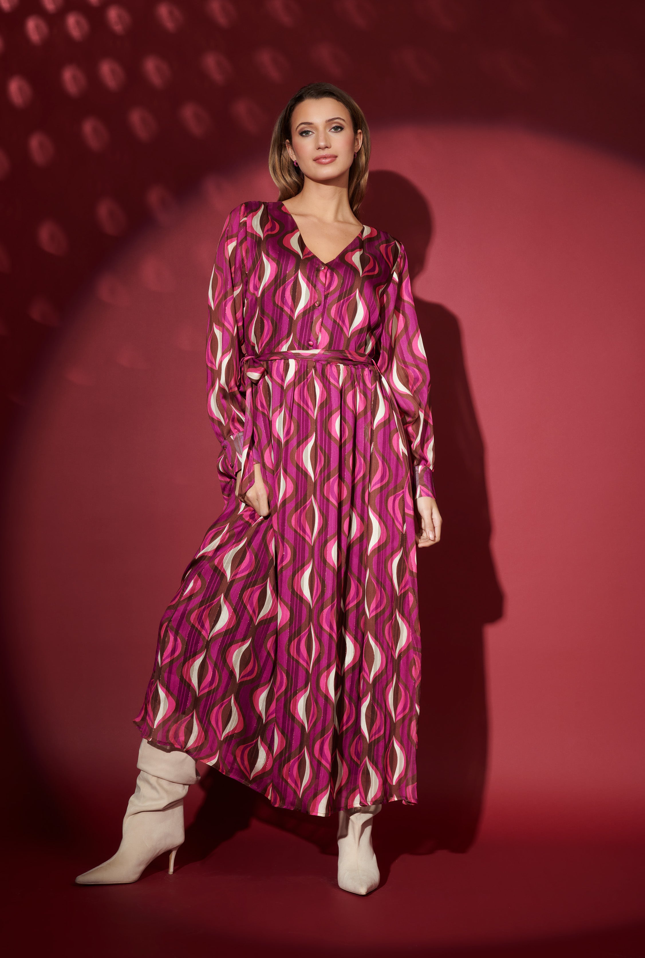 25527 Damesgebreide Jurk Zand Met Golfpatroon Pof... | Red - Pink