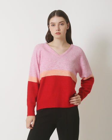 23853 Dames Top Met V-Halsstreepjesprint | Muticolour