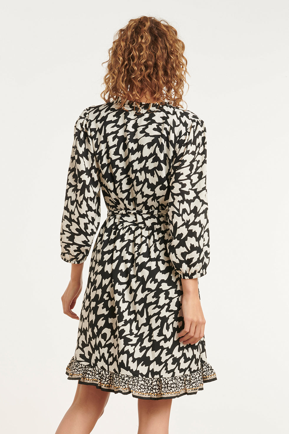 Zwart-Witte Dierachtig Print Jurk Met Ceintuur En Ruffle Detail | Black White