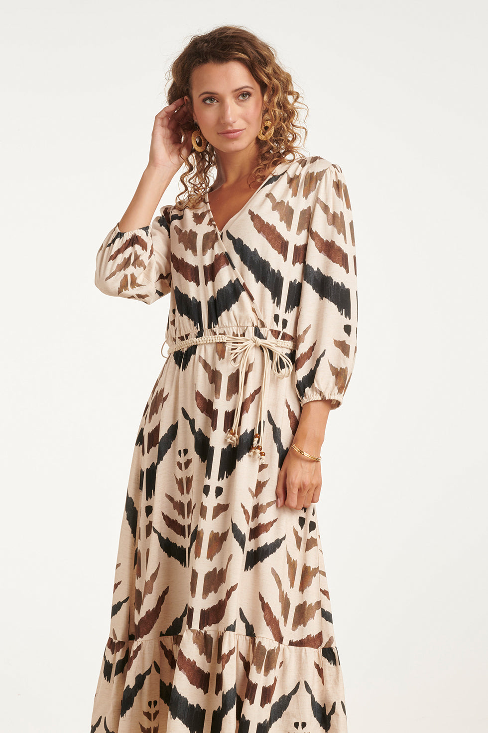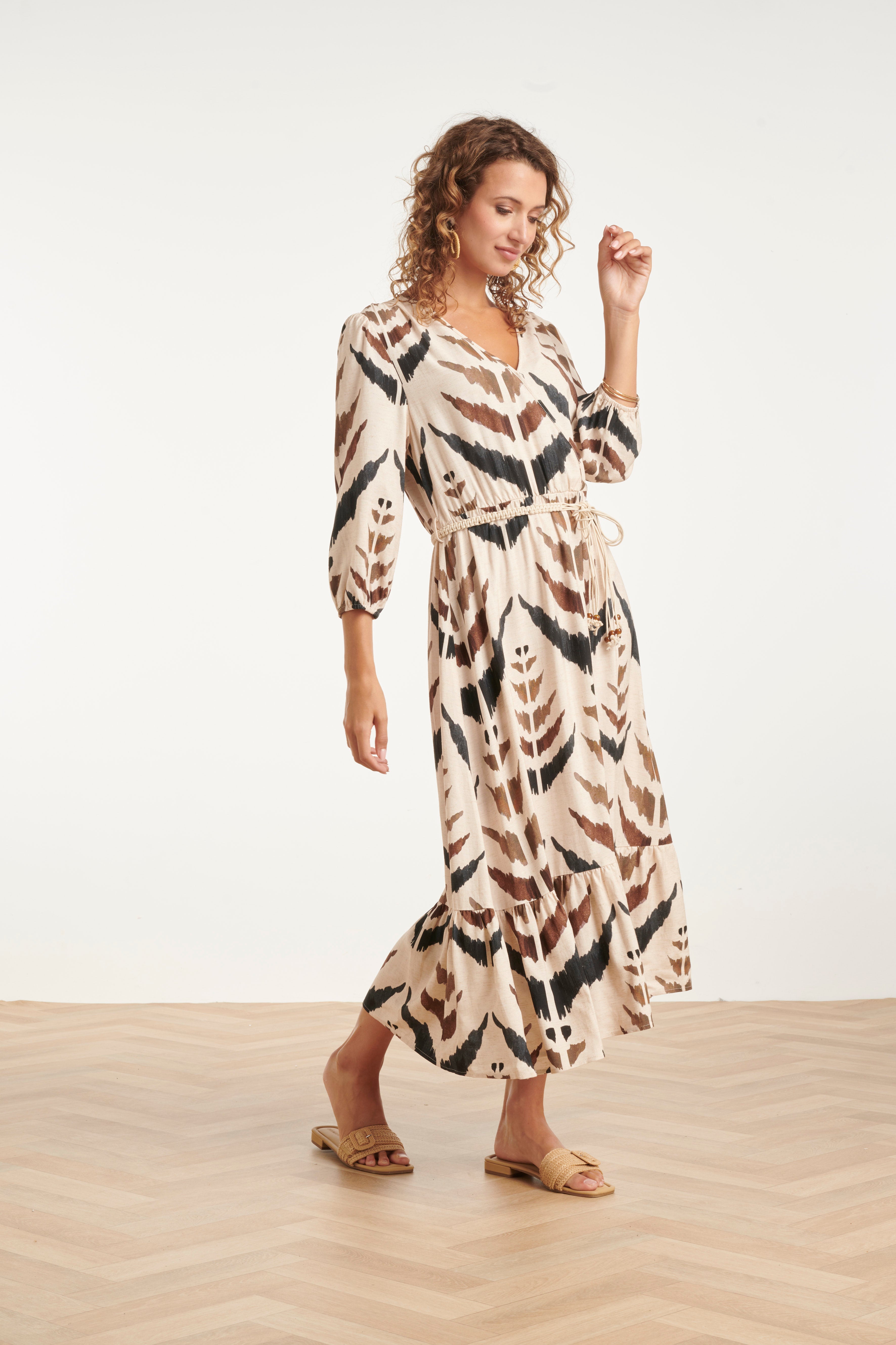 Maxi Overslagjurk Met Grafische Aztec Print | Sand - Muticolour
