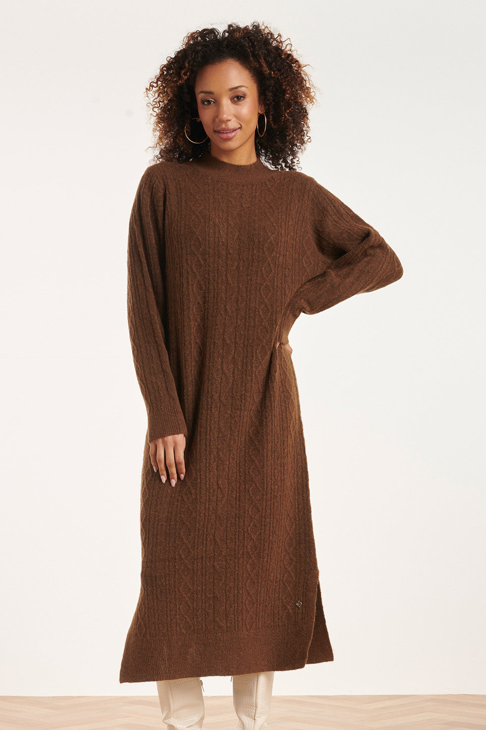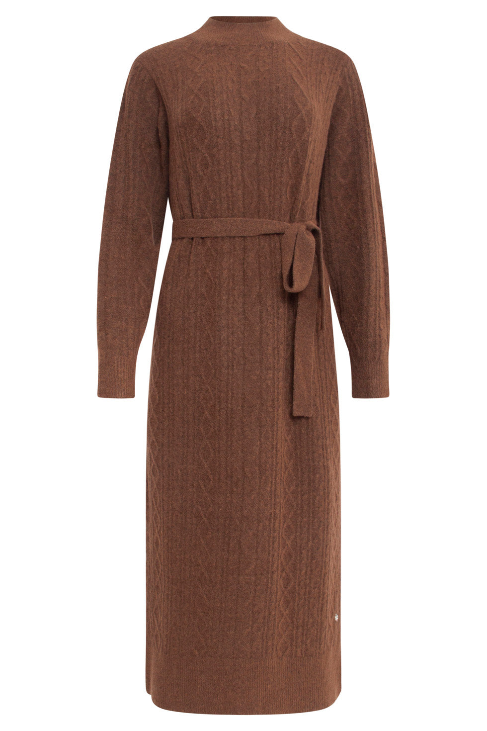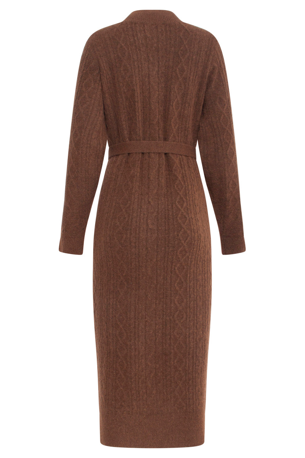 24631 E Gebreide Midi Jurk Met Kabelstructuur | Brown