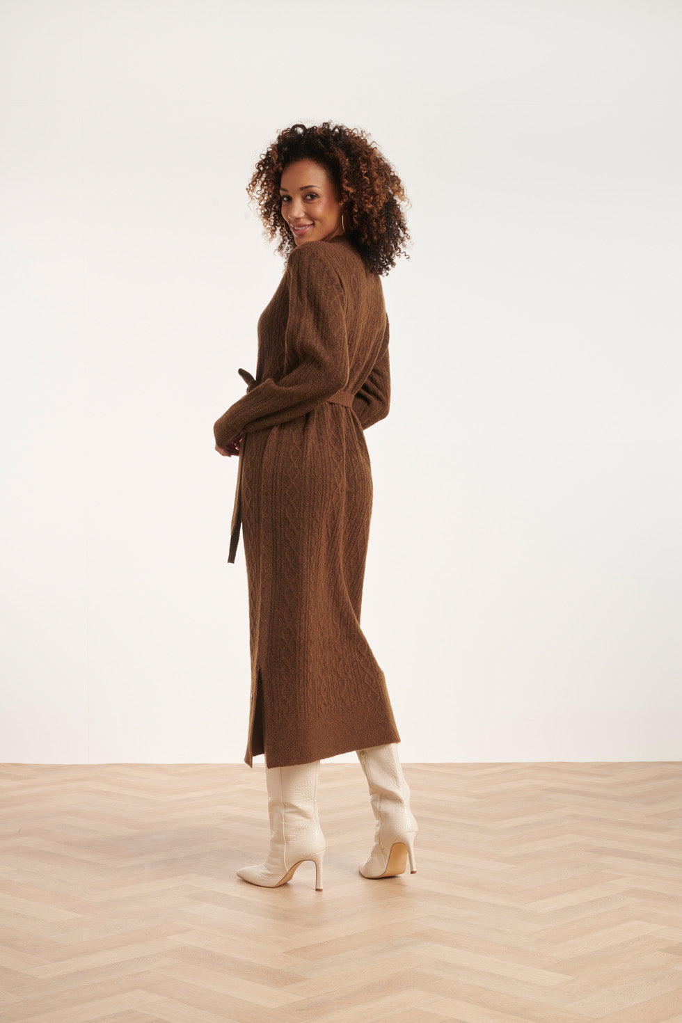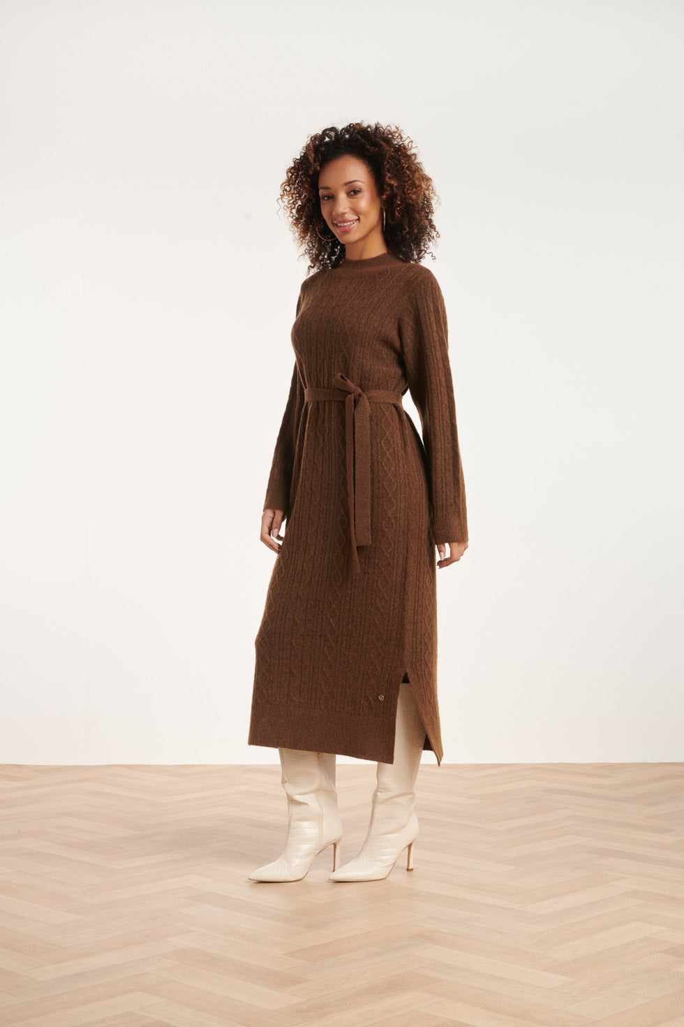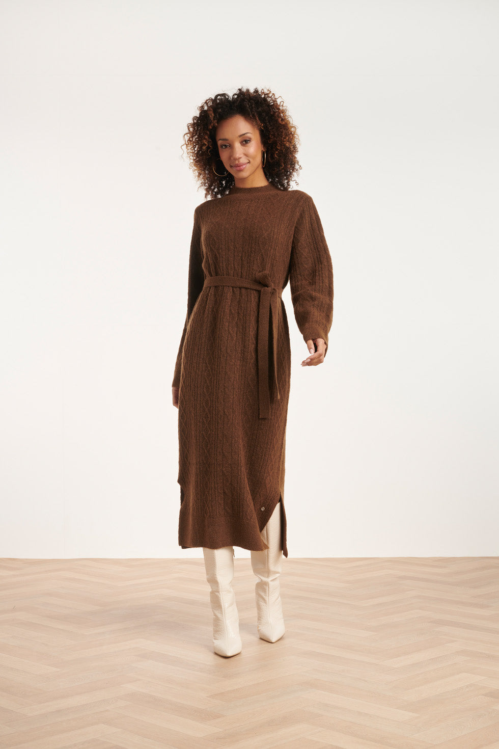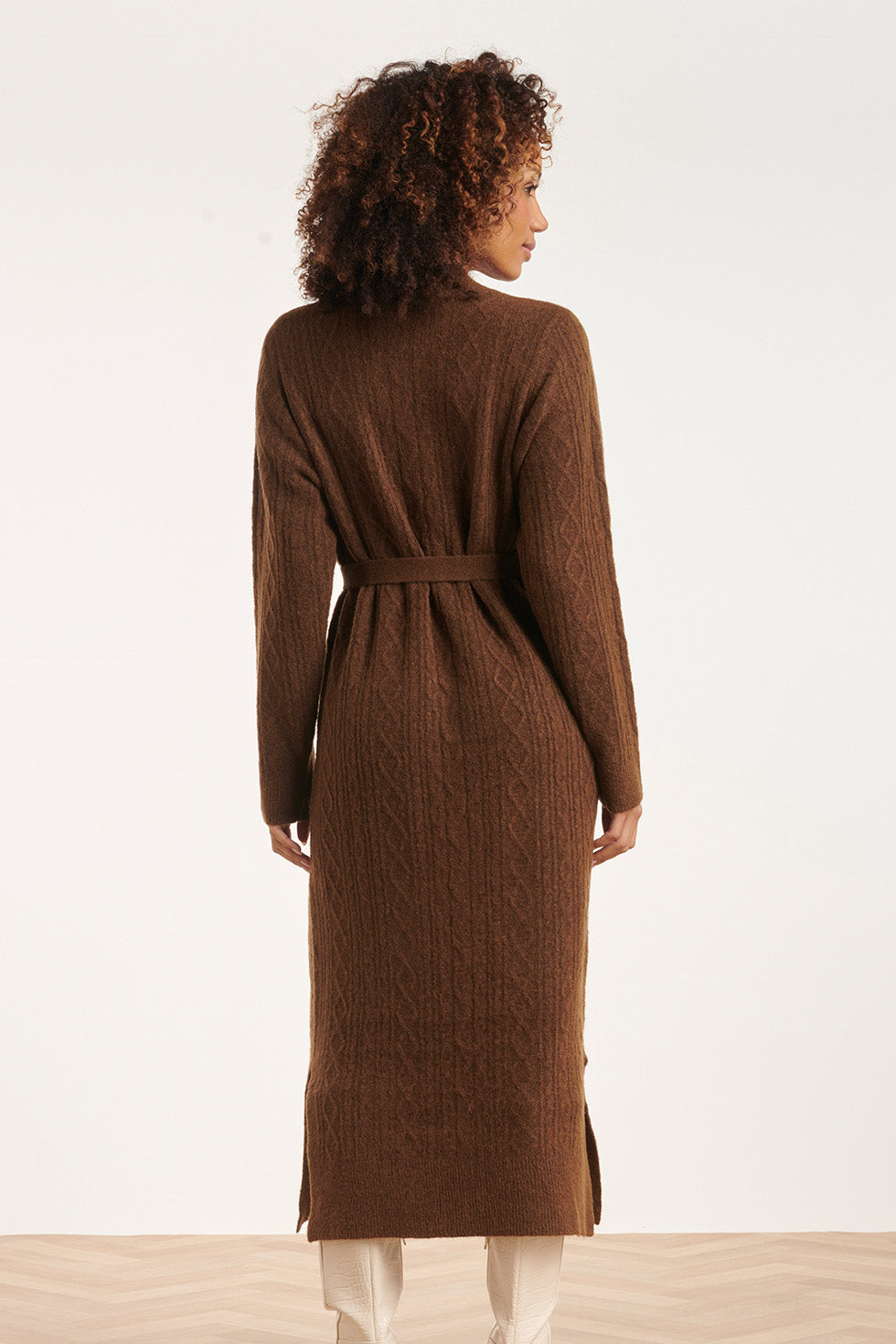 24631 E Gebreide Midi Jurk Met Kabelstructuur | Brown
