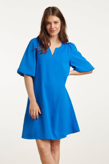 25152 Balloon Sleeve Kort JurkKobalt | Cobalt