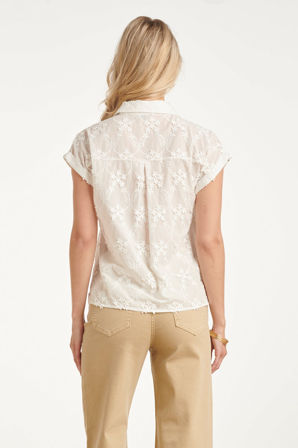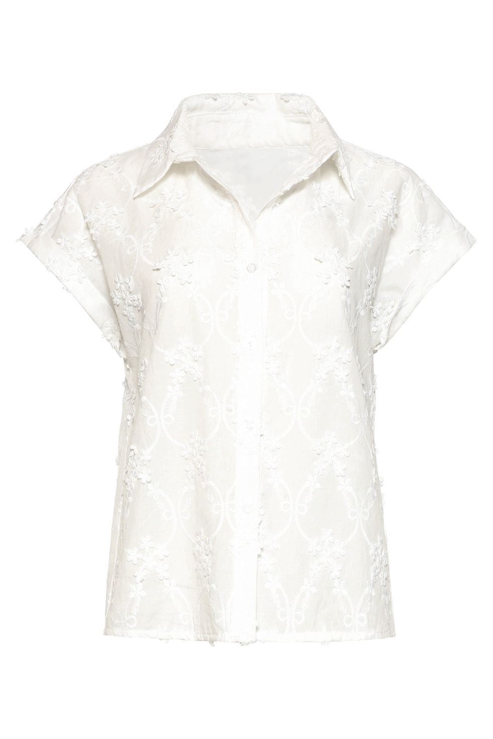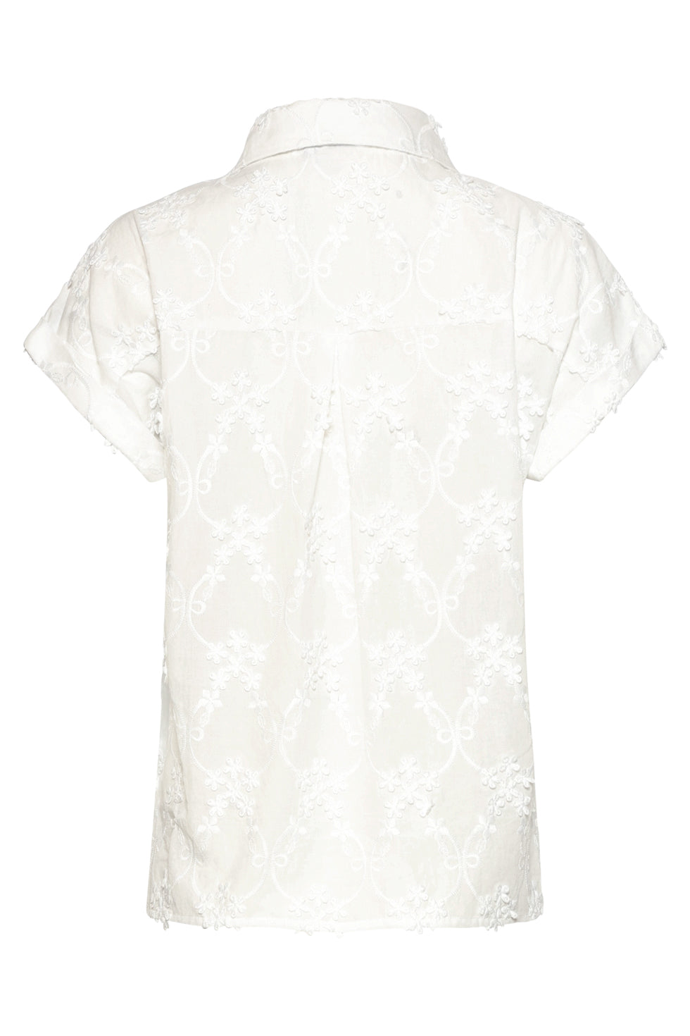 Blouse Met Bloemen Borduursel En Korte Mouwen | White