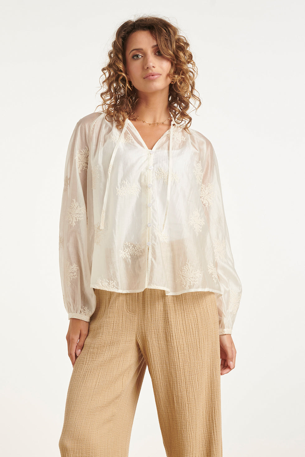 Luchtige Boho-Blouse met Geborduurde Print | Off White