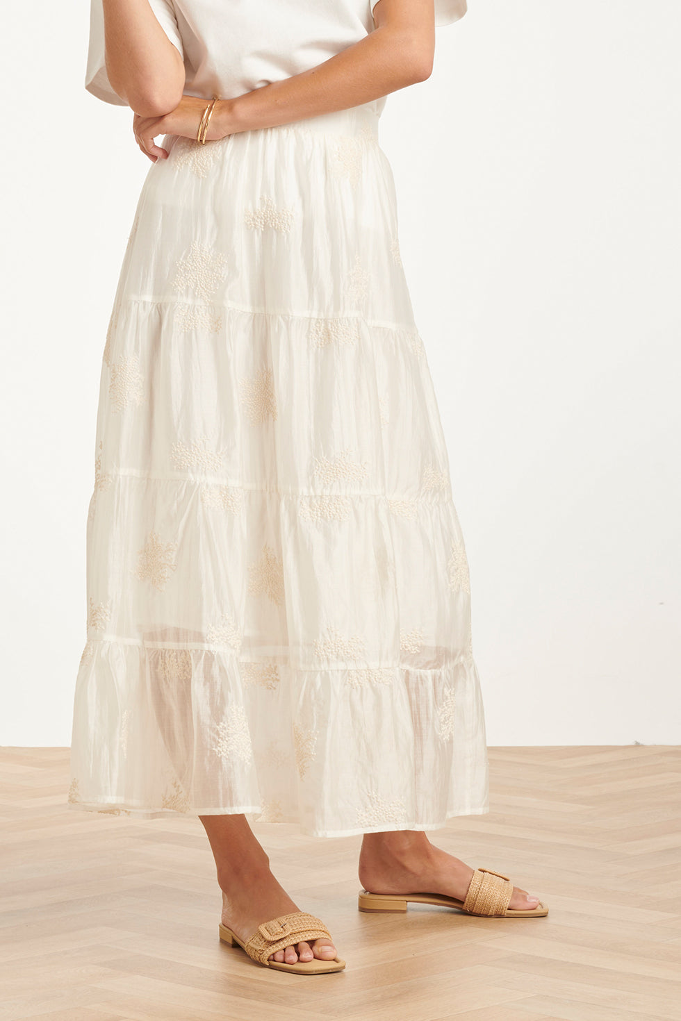 Zwierige Maxi-Rok Met Geborduurde Print En Stroken | Off White