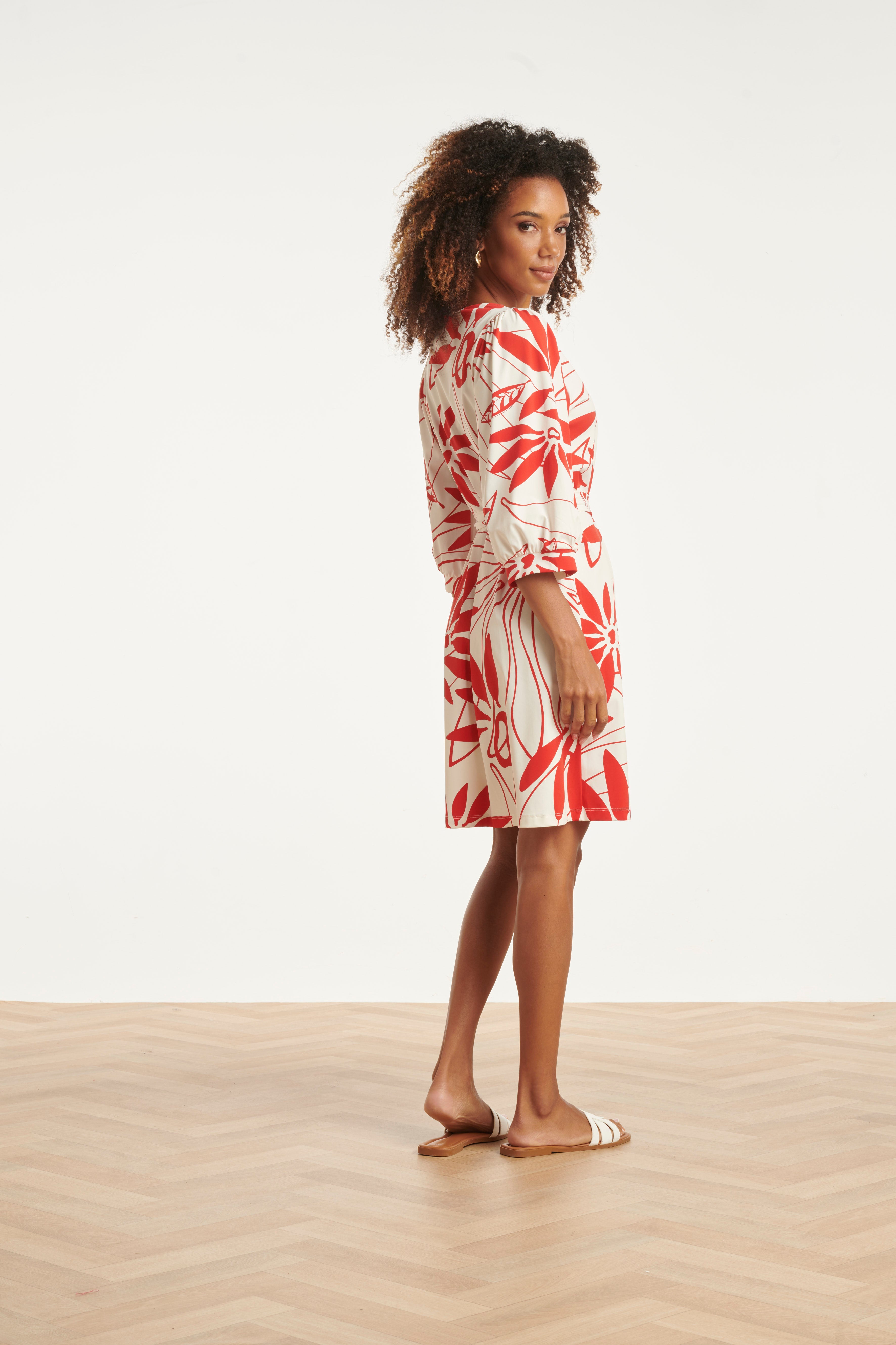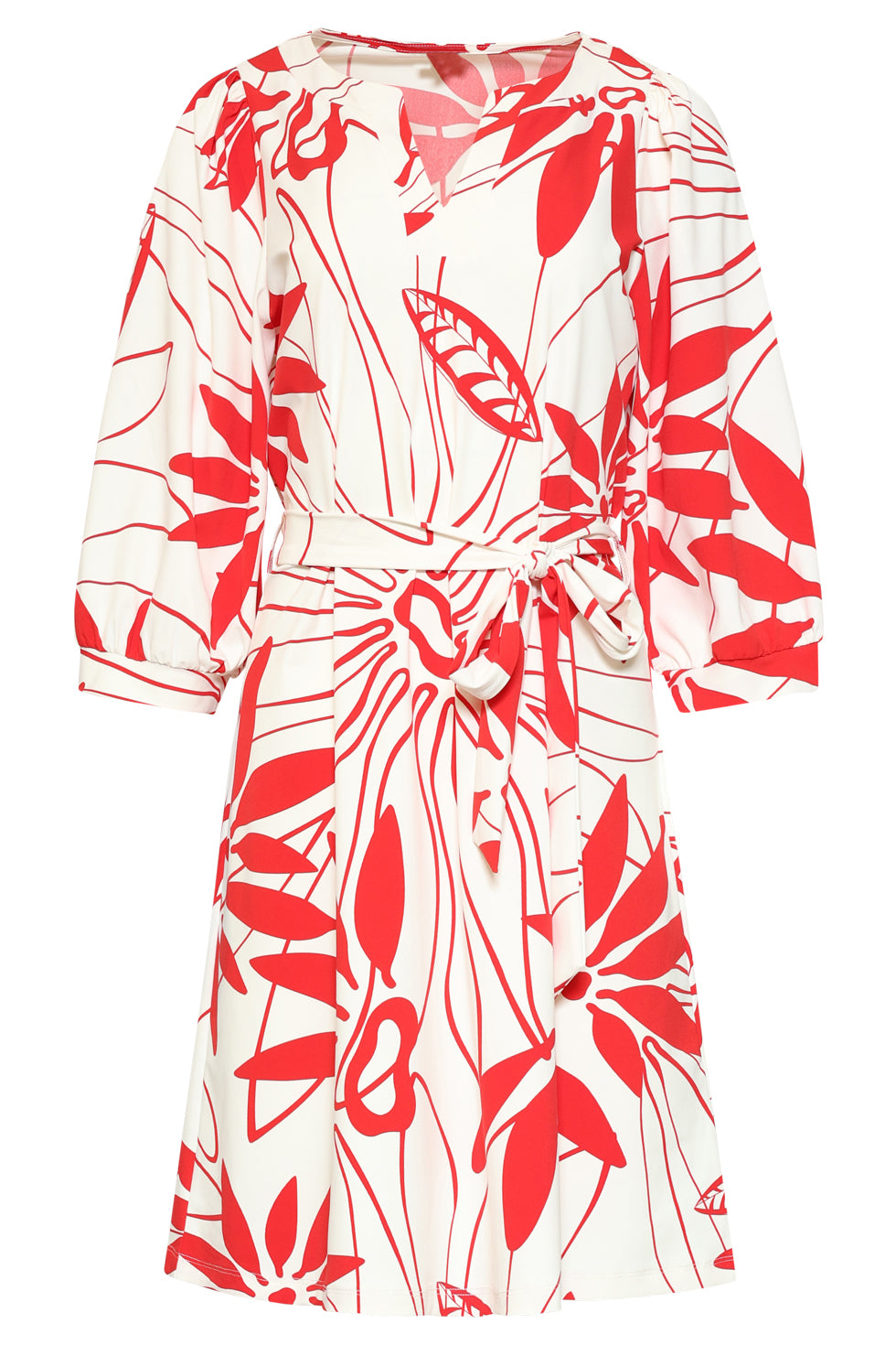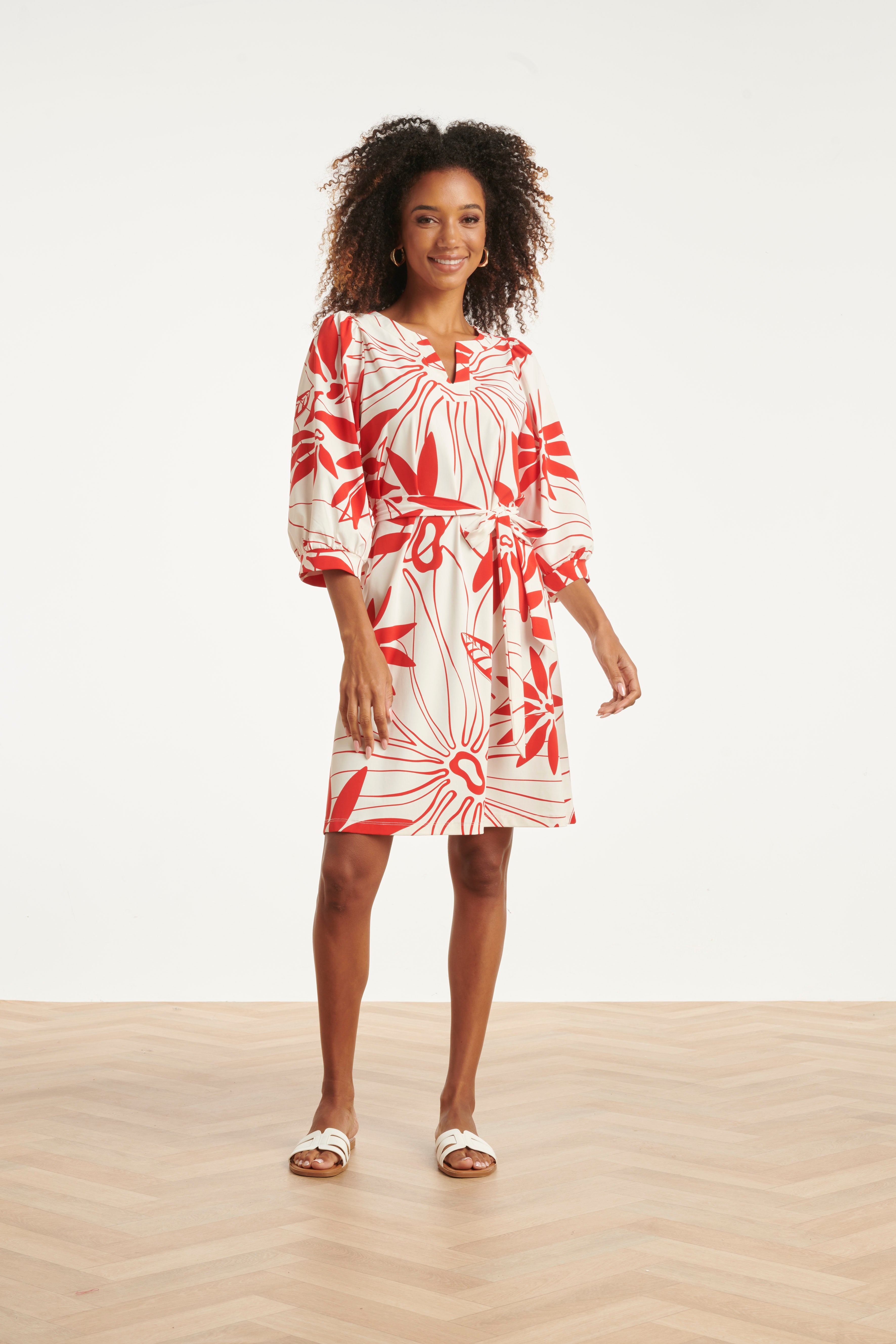 Breng kleur in je garderobe met deze prachtige eyecatcher van Smashed Lemon. Deze elegante jurk met een levendige rode bloemenprint op een friswitte basis is de perfecte keuze voor zowel een zakelijke afspraak als een zomers diner. De jurk heeft een flatterende V-hals en driekwart mouwen met subtiele pofdetails voor een vrouwelijke touch. Wat deze jurk echt bijzonder maakt, is de hoogwaardige travel kwaliteit. Deze stof staat bekend om zijn enorme draagcomfort en praktische eigenschappen: het kreukt niet, ademt goed en droogt razendsnel na het wassen. Dankzij de bijpassende strikgordel in de taille accentueer je eenvoudig je silhouet voor een perfecte pasvorm. Belangrijke kenmerken: Hoogwaardige travelstof: Kreukvrij, ademend en sneldrogend materiaal voor optimaal gemak. Vrouwelijk silhouet: Voorzien van een elegante V-hals, driekwart pofmouwen en een bijpassend strikceintuur. Opvallende print: Een frisse rode bloemenprint die perfect is voor elke gelegenheid.