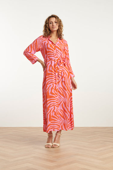 25086 Sommer Maxi Hemdkleid mit Tierdruck | Pink - Orange
