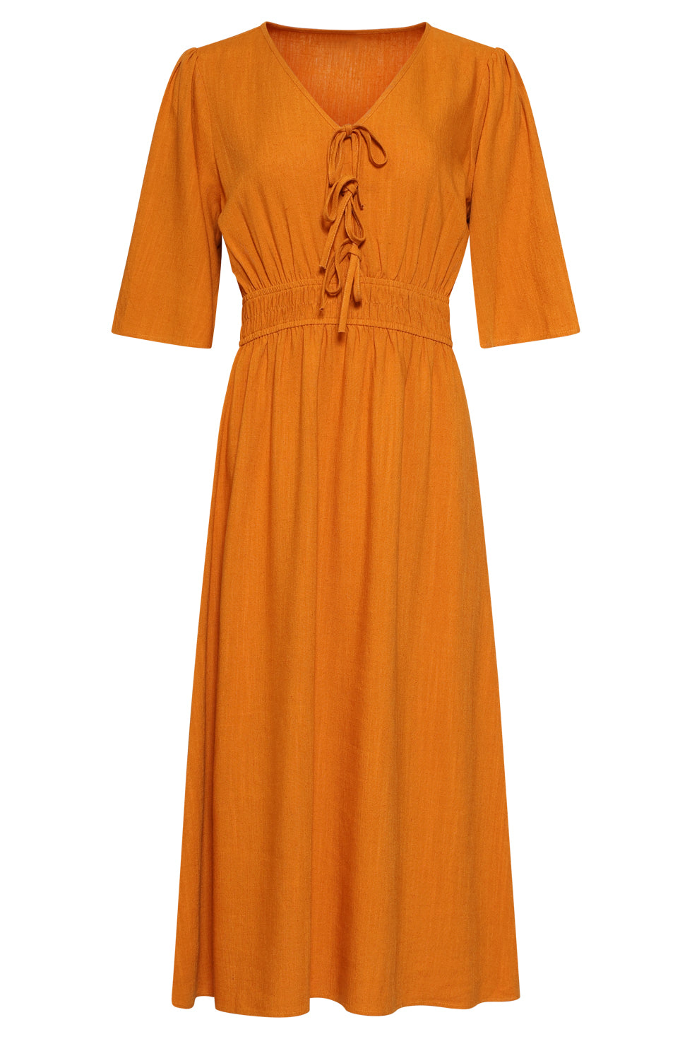 Luchtige Linnen Midi-Jurk Met Vetersluiting | Mustard