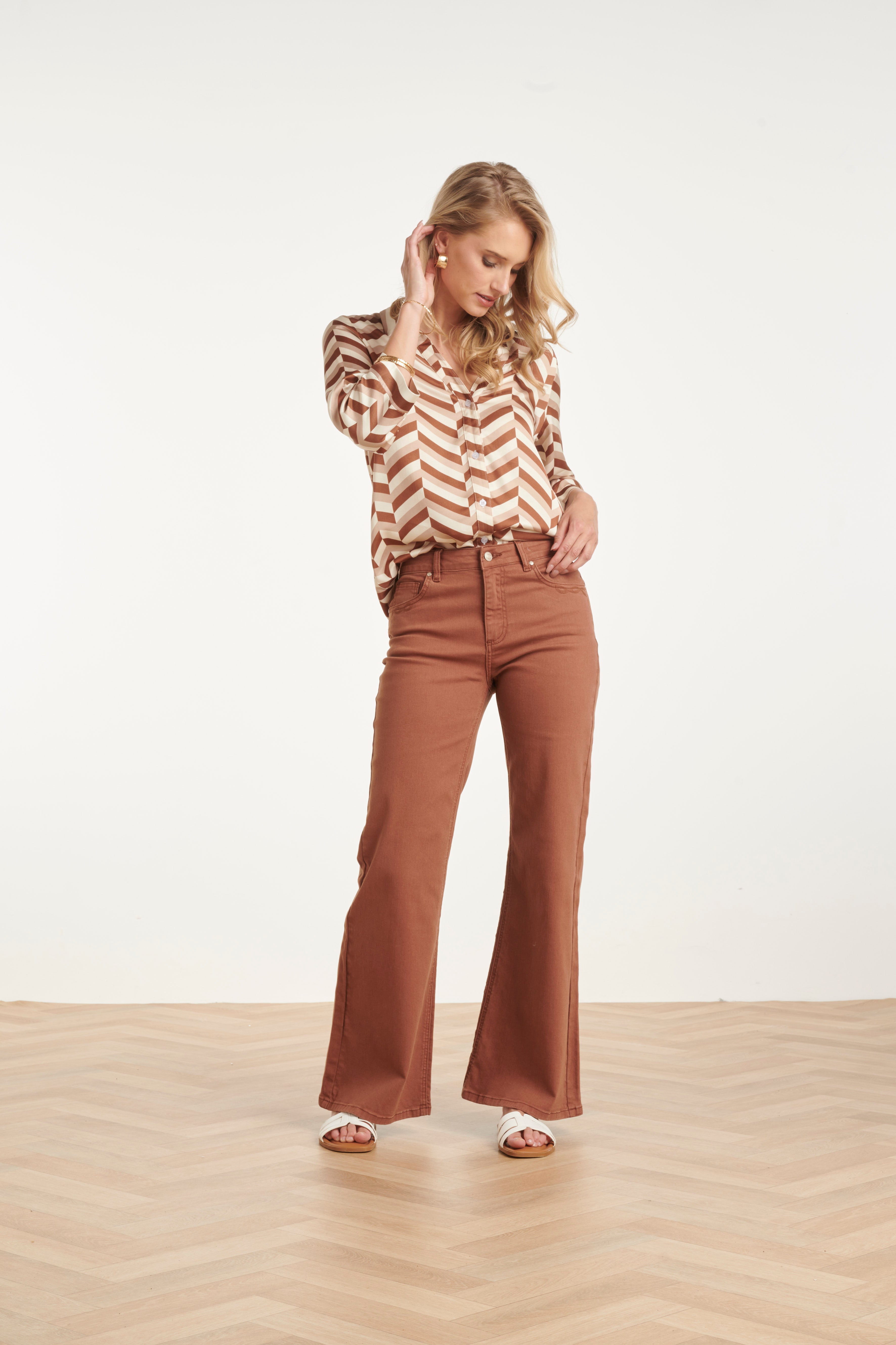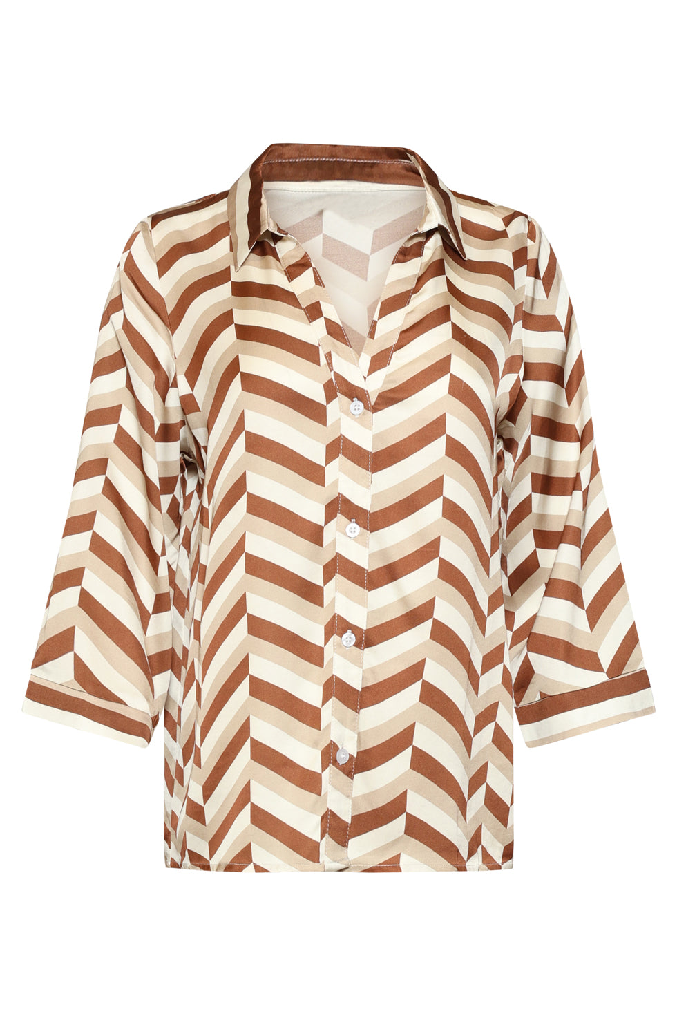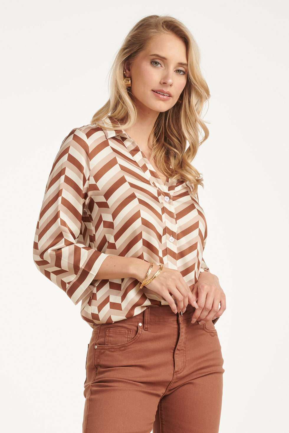 Blouse Met Grafische Chevron Print | Brown - Dark Sand