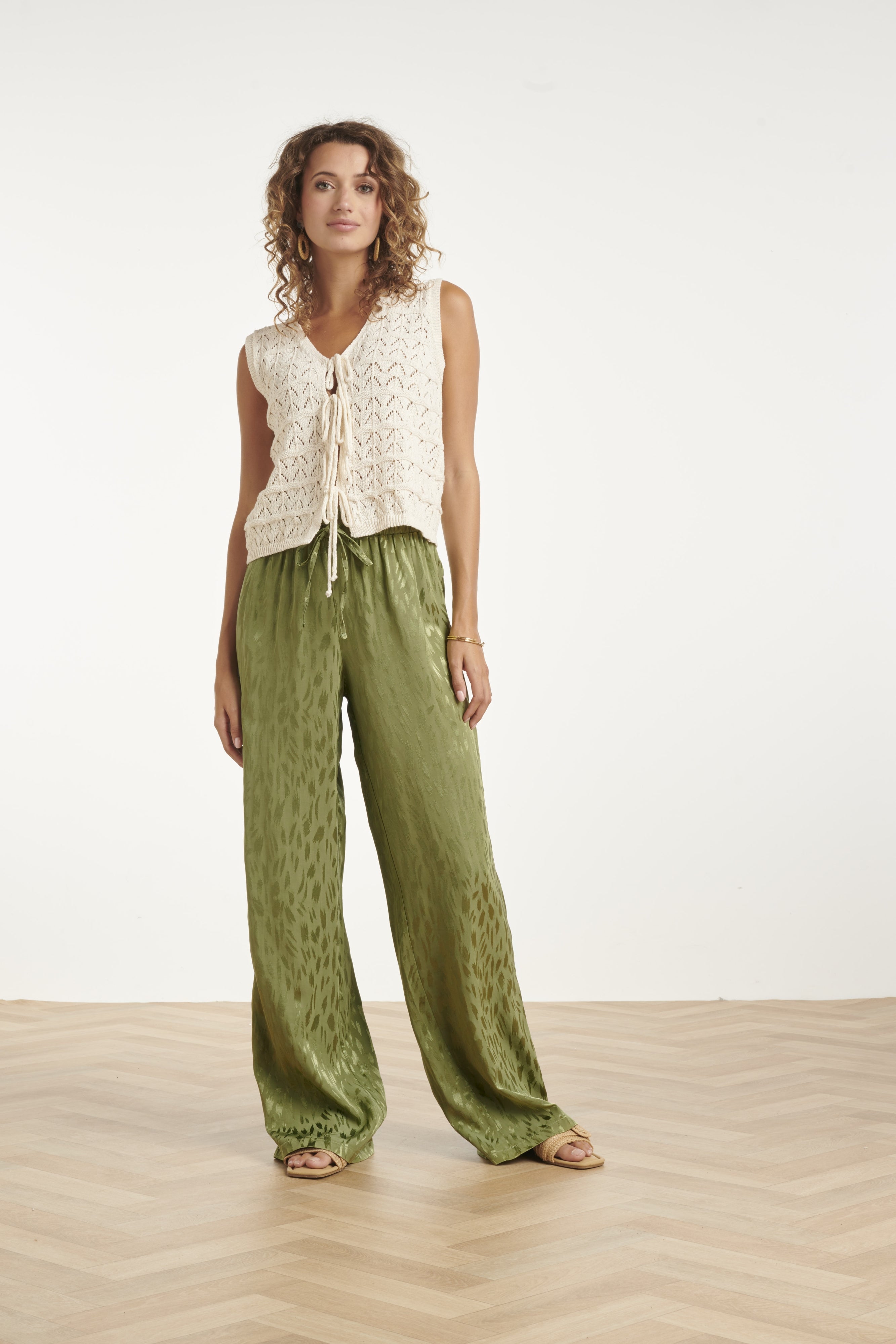 Glinsterende Wide-Leg Pantalon Met Dieren Print In Olijfgroen | Army