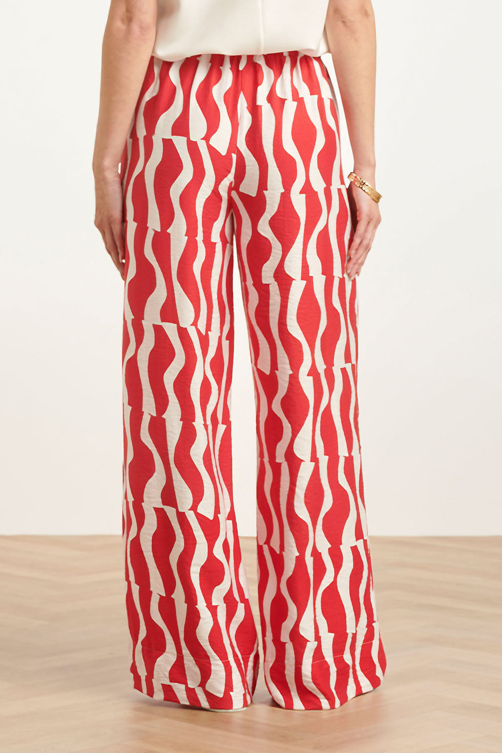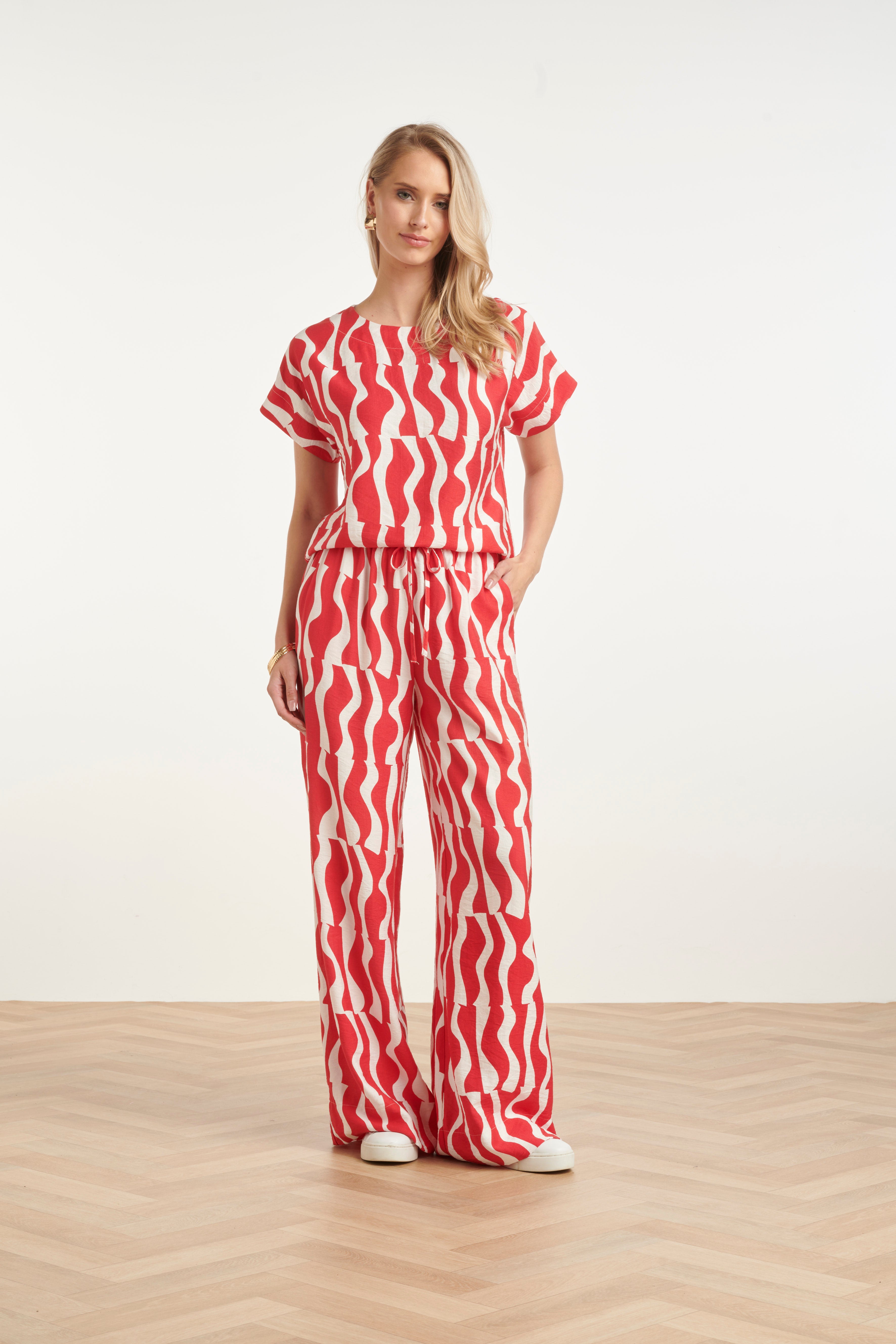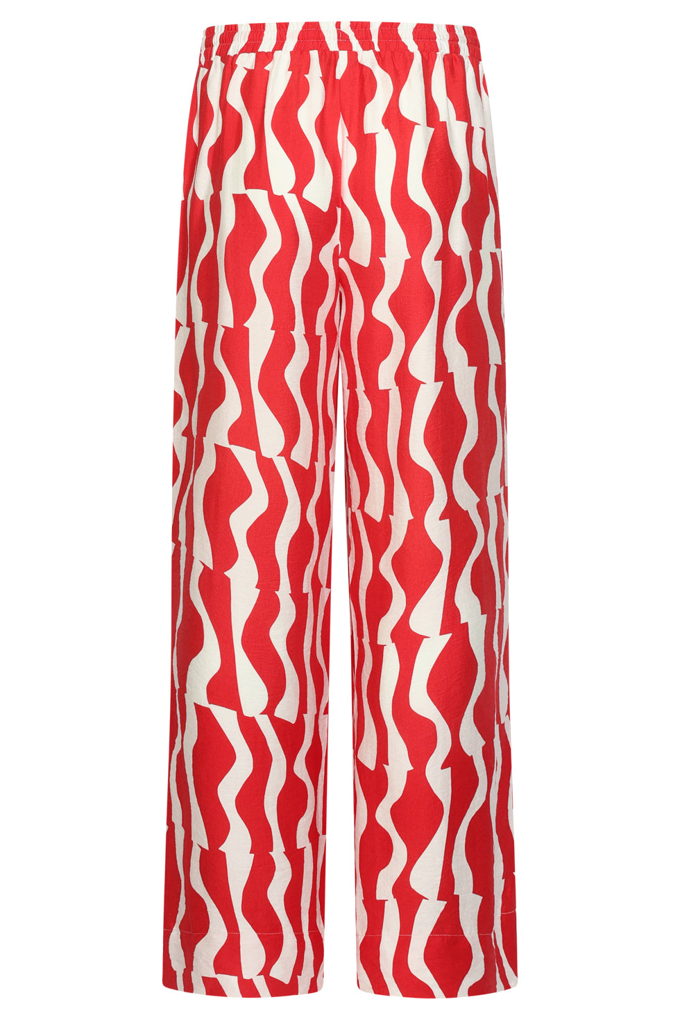 Wijde Broek Met Rood-Witte Golvende Print | Red - White
