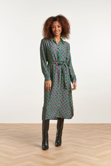 Welkom bij Smashed Lemon, waar stijl en comfort elkaar ontmoeten in deze prachtige shirt jurk. Deze semi-button-through jurk is voorzien van een opvallende abstracte ornamentprint in betoverende groene, paarse en zwarte kleuren. De jurk heeft kleine zijsplitten en wordt geleverd met een bijpassende riem, waarmee je jouw taille kunt accentueren voor een flatterende pasvorm. De Smashed Lemon shirt jurk is veelzijdig en moeiteloos chic. De kleine zijwaartse splitsingen voegen een speels tintje toe aan het anders strakke ontwerp. De semi-button-through stijl geeft je de vrijheid om de jurk op verschillende manieren te dragen, of je hem nu open laat voor een ontspannen look of gesloten voor een formelere uitstraling. De abstracte ornamentprint is een ware blikvanger en voegt een kunstzinnig element toe aan deze prachtige jurk. Gemaakt van milieuvriendelijk Rayon Ecovero-materiaal, voelt de jurk zijdezacht aan op je huid en biedt hij de hele dag door comfort. Of je nu naar een feestje gaat, een dagje uit of gewoon naar kantoor, deze jurk is de perfecte keuze voor elke gelegenheid.