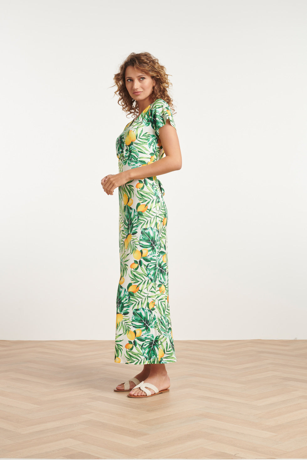 Voeg een vleugje speelse elegantie toe aan je garderobe met de Beroemde Citroen Bedrukte Maxi Jurk van Smashed Lemon.