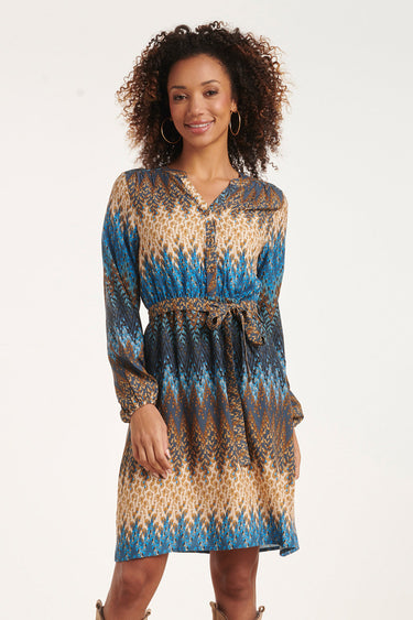 24643 Multicolour Zigzagprint Jurk | Blue - Sand