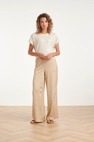 Elegante Top Met PaillettEn en Korte Mouwen | Sand - Dark Sand