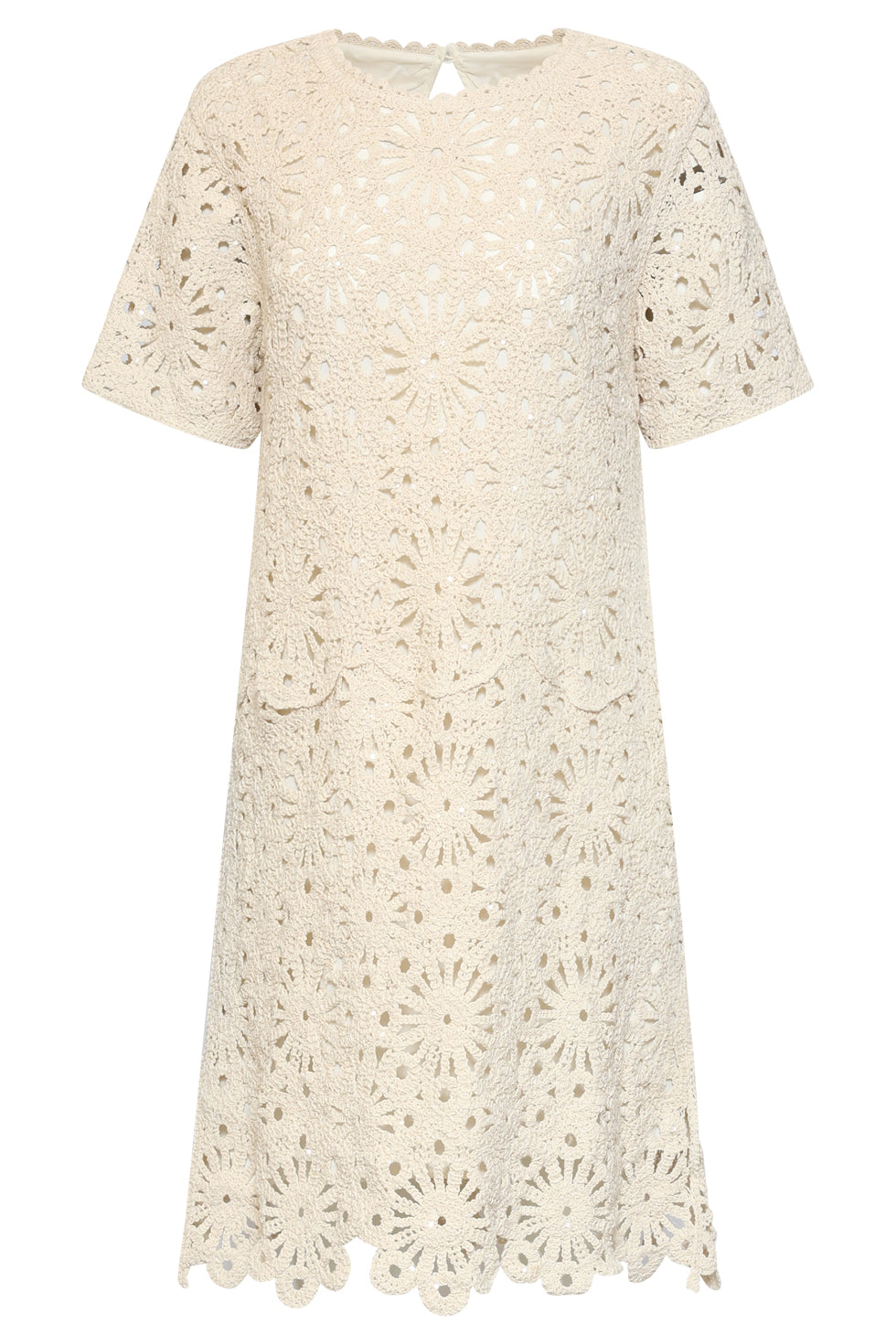 Elegante Gehaakte Jurk met Bloemenprint in Off-White | Off White