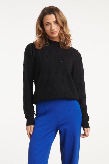 25810 – Made In Italy Gebreide Trui Met Bolletjesstructuur | Black