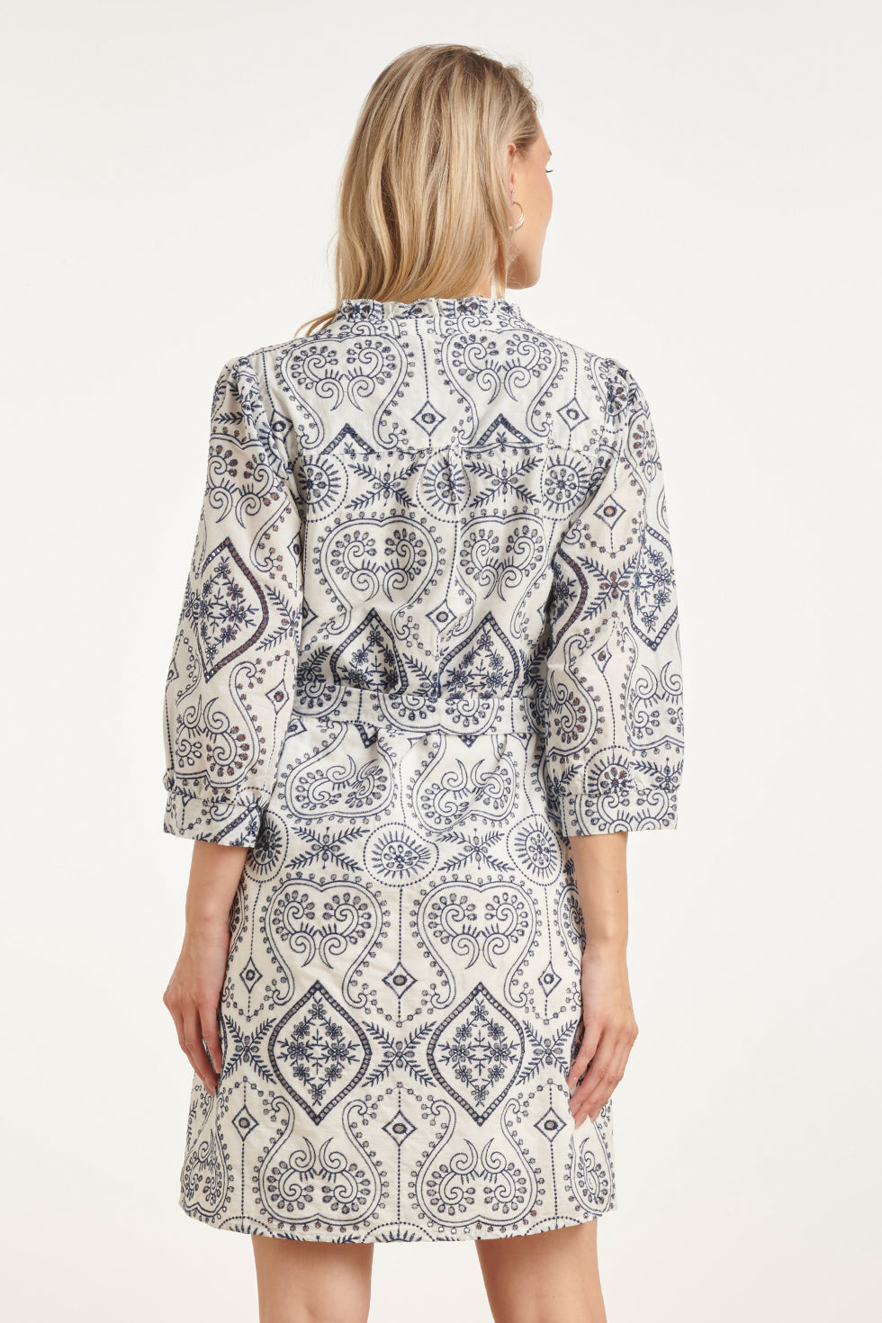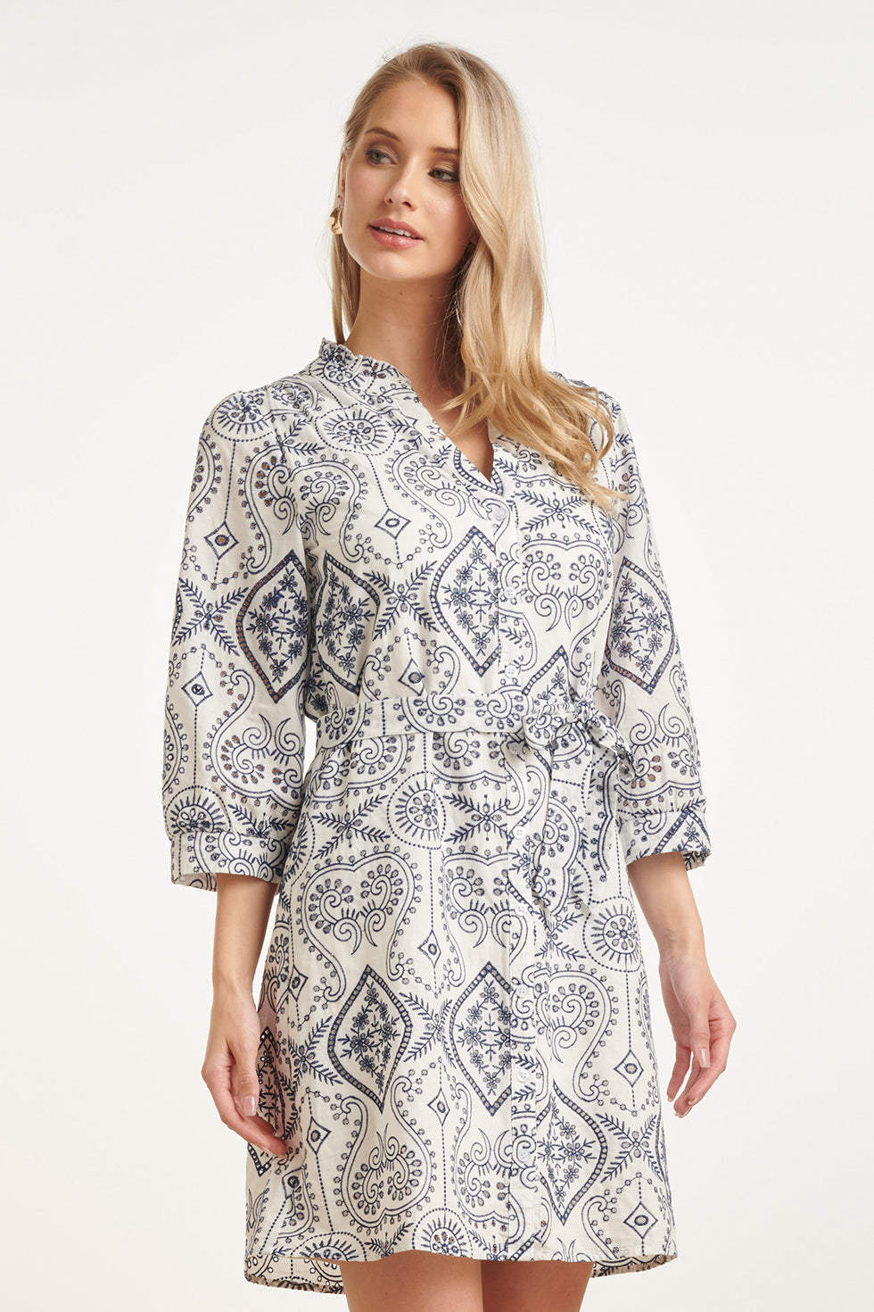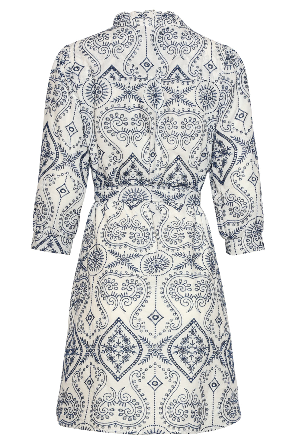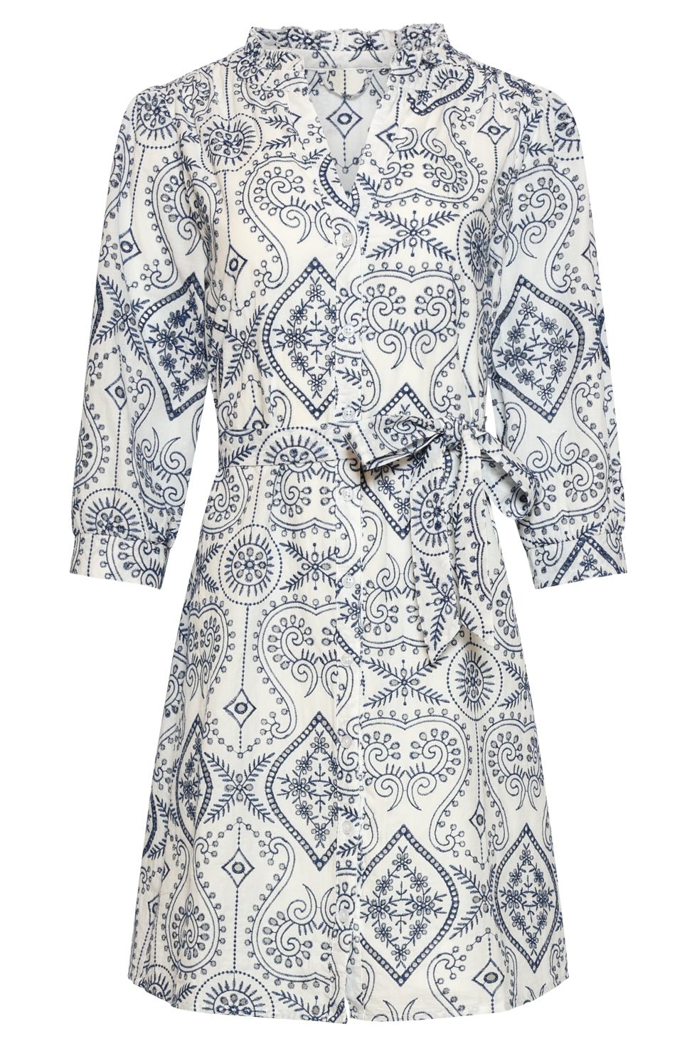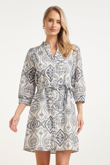 Doorknoopjurk Met Paisley Borduurwerk | White - Navy