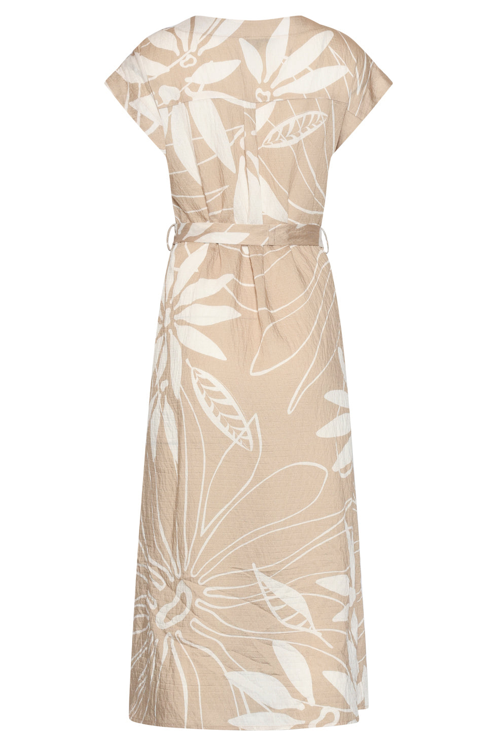 Midi-Jurk Met Bloemprint En Korte Mouwen - Beige/Wit | Dark Sand - Off White
