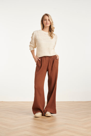 Gebreide Trui met Reliëfpatroon en Ronde Hals | Off White