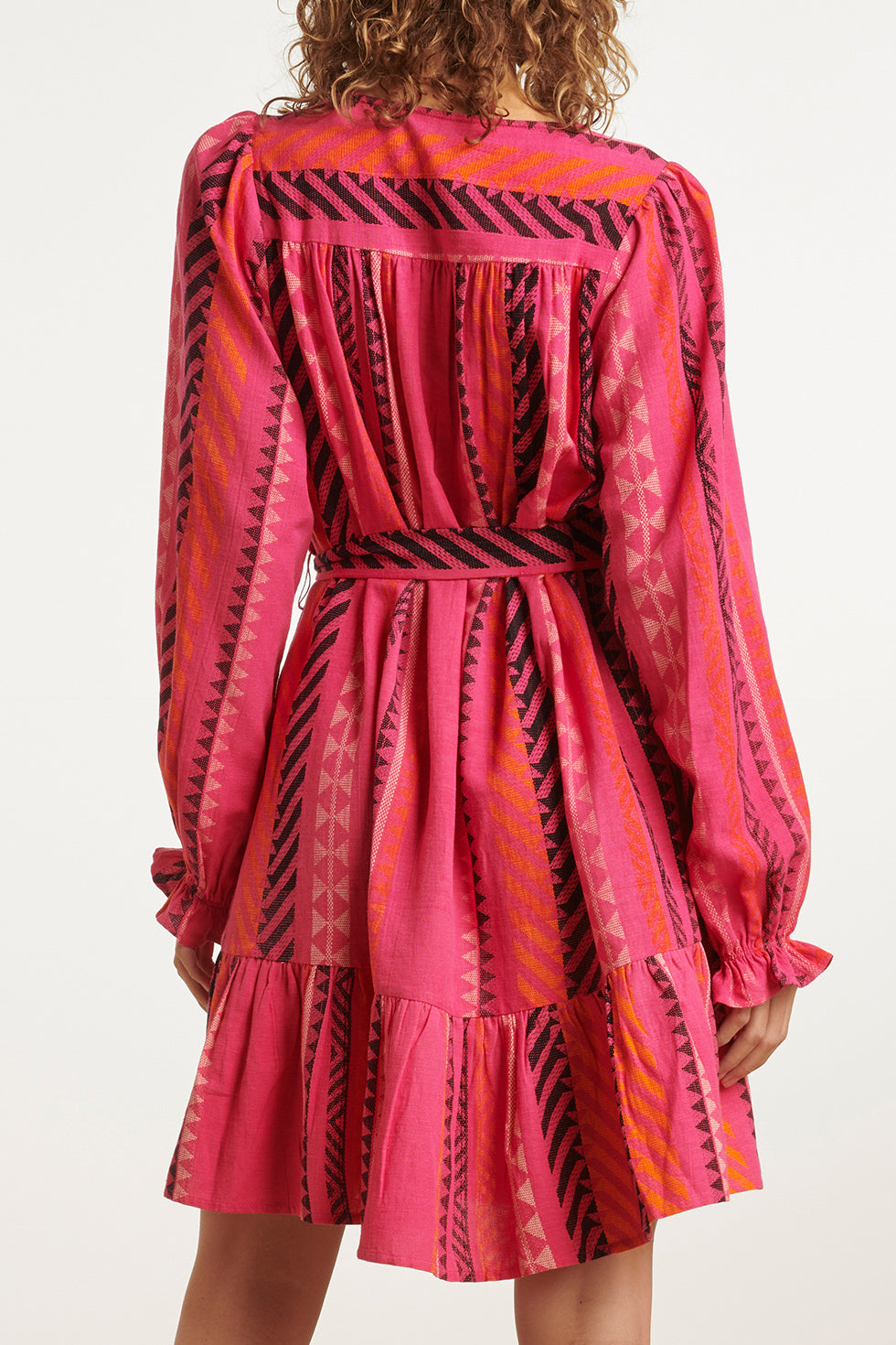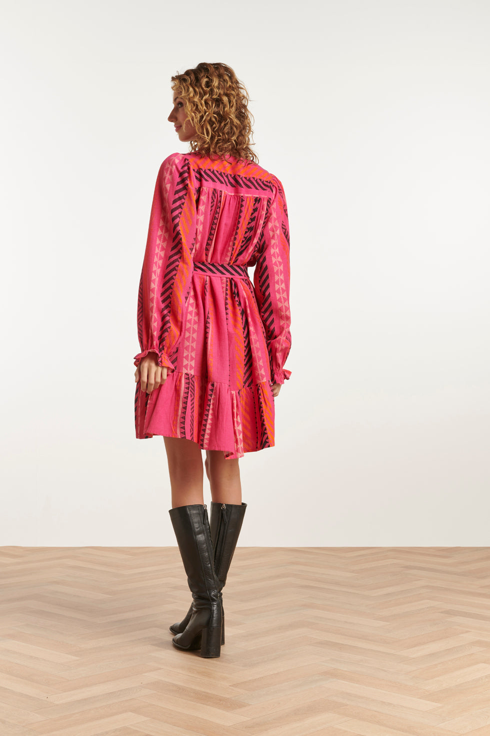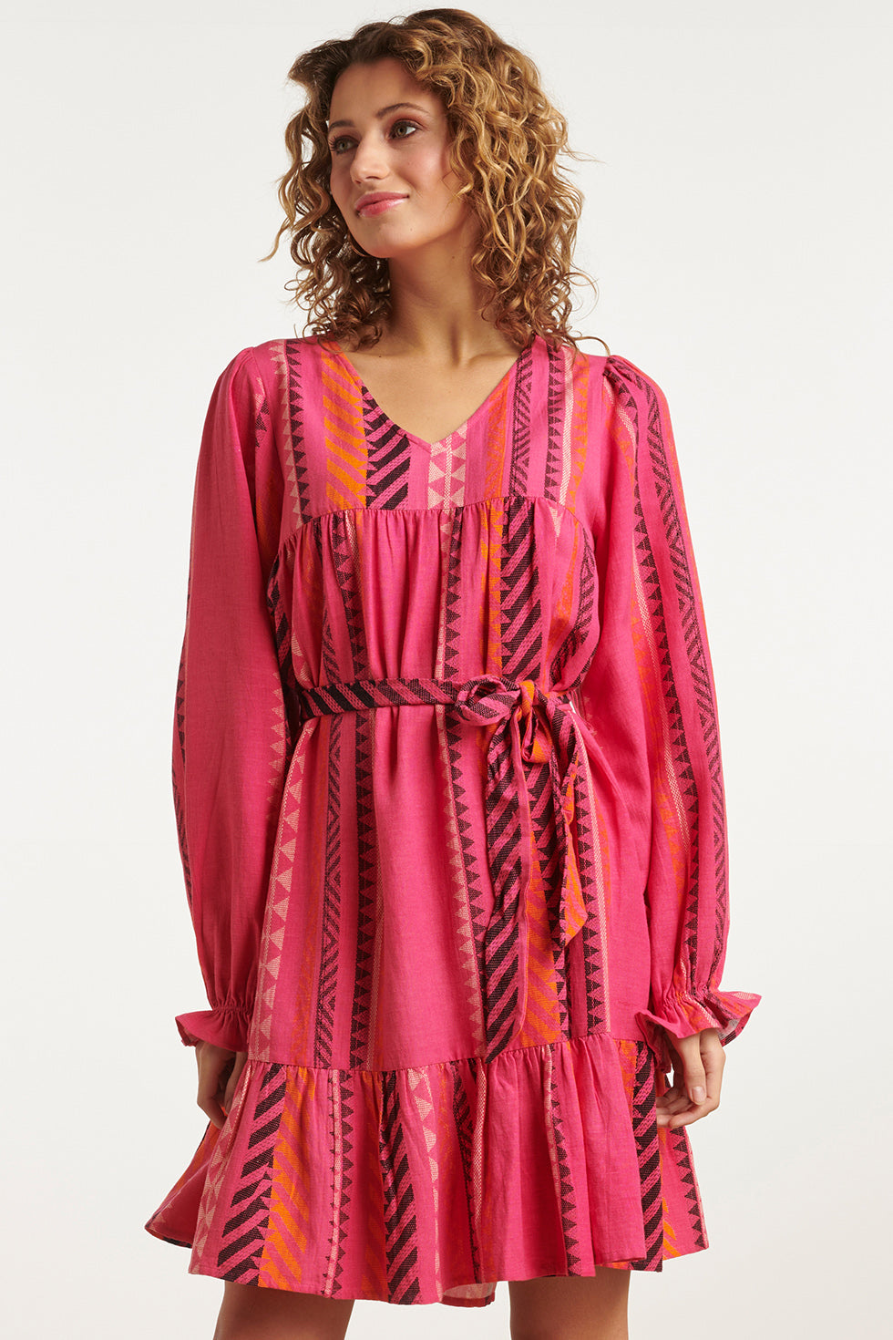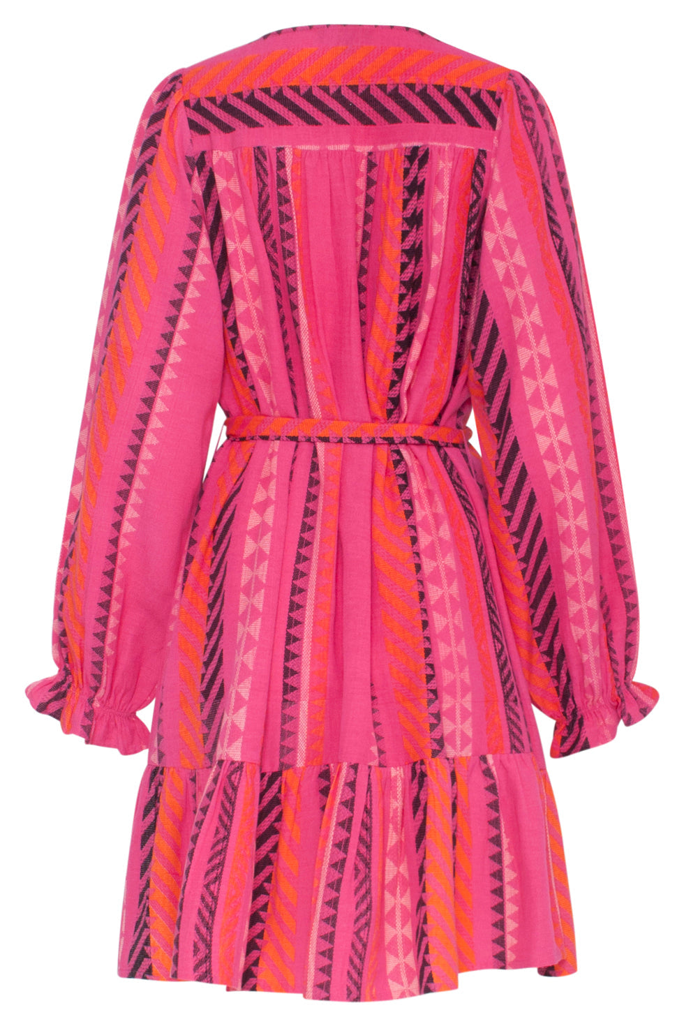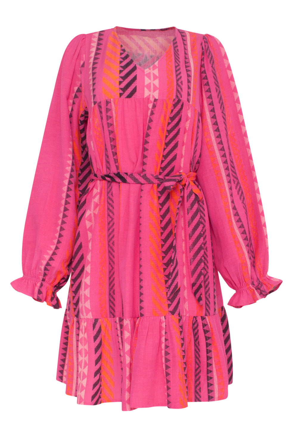 23668 Dames Fuchsia Jurk Met Aztec Allover Print | Fuchsia - Orange