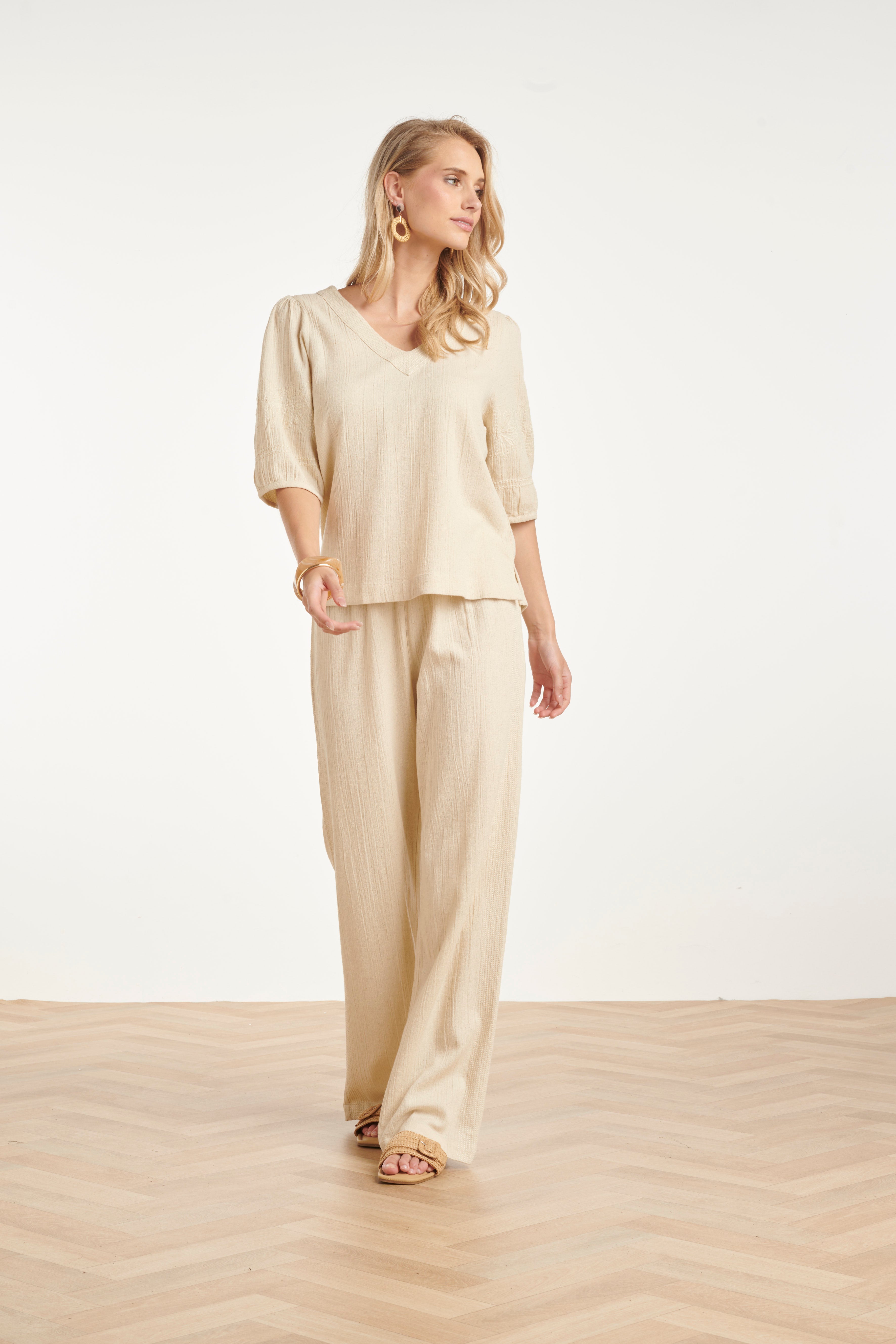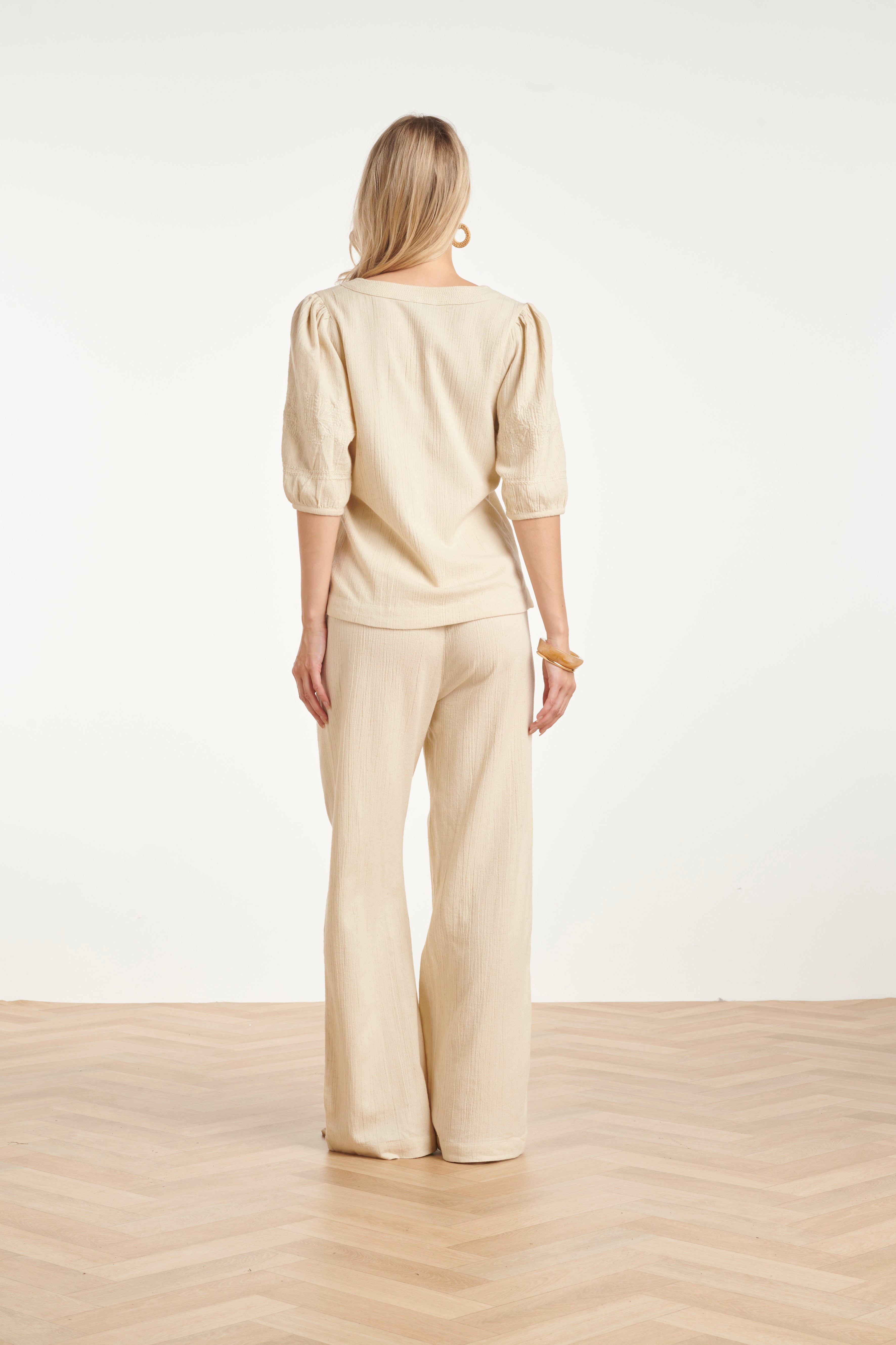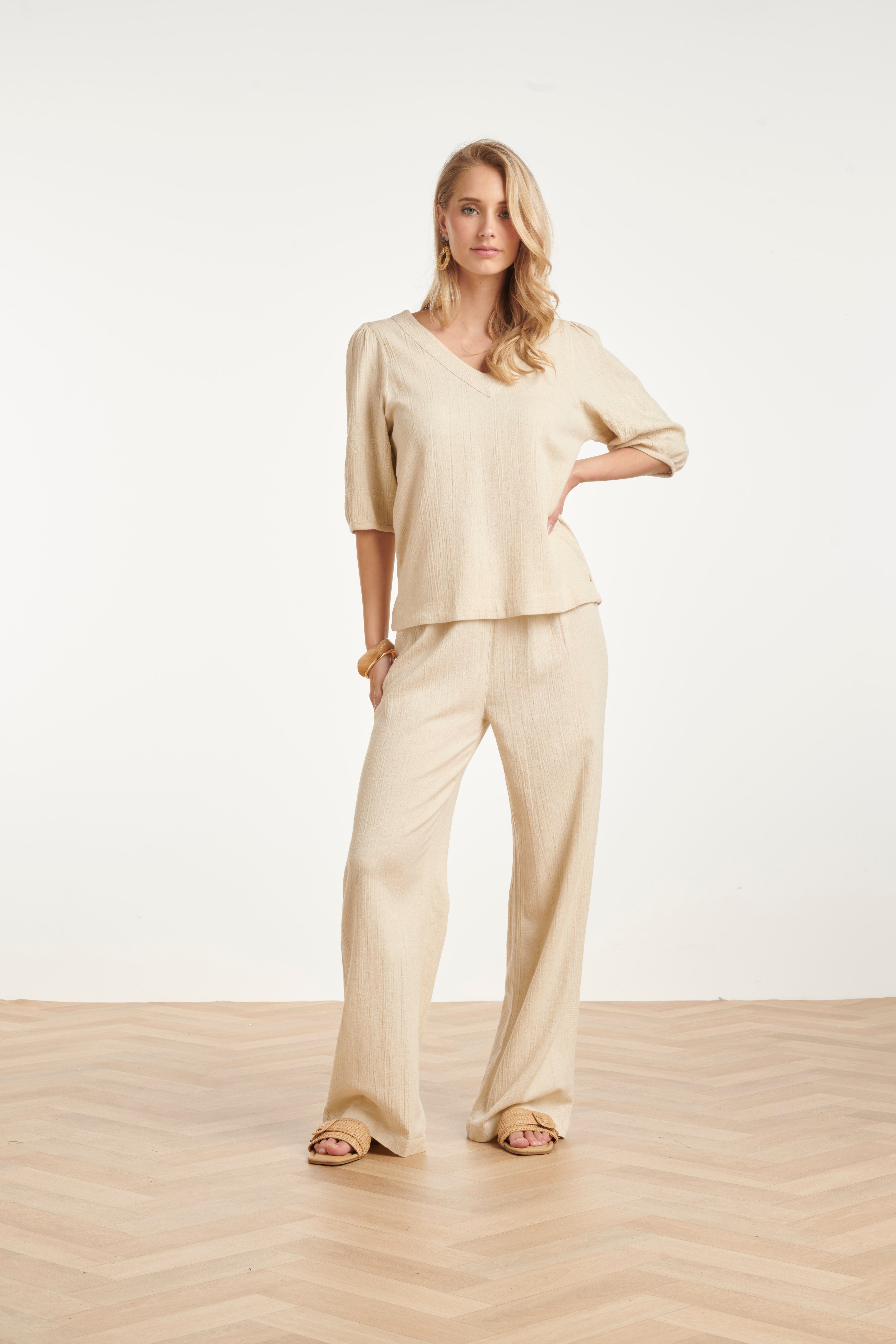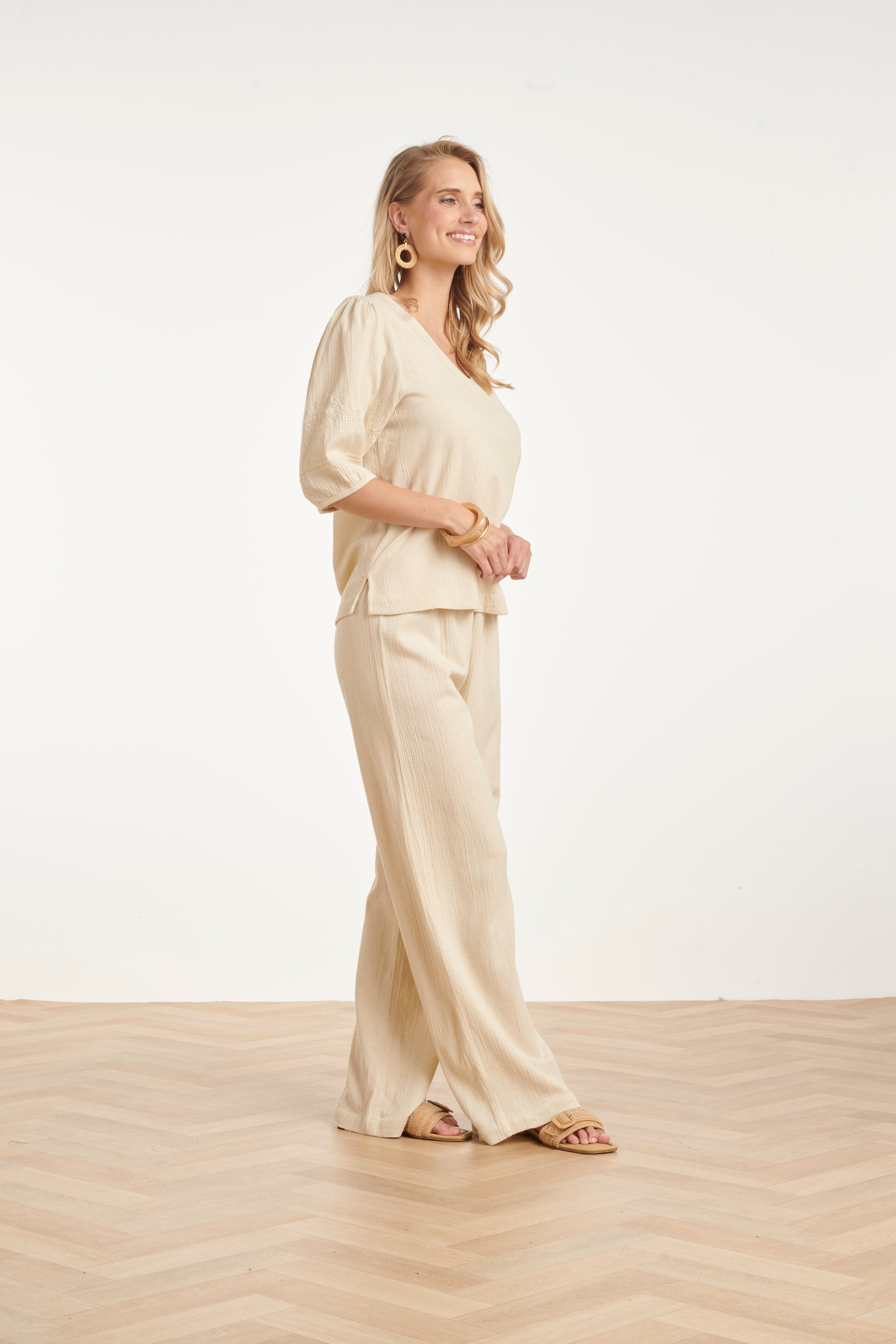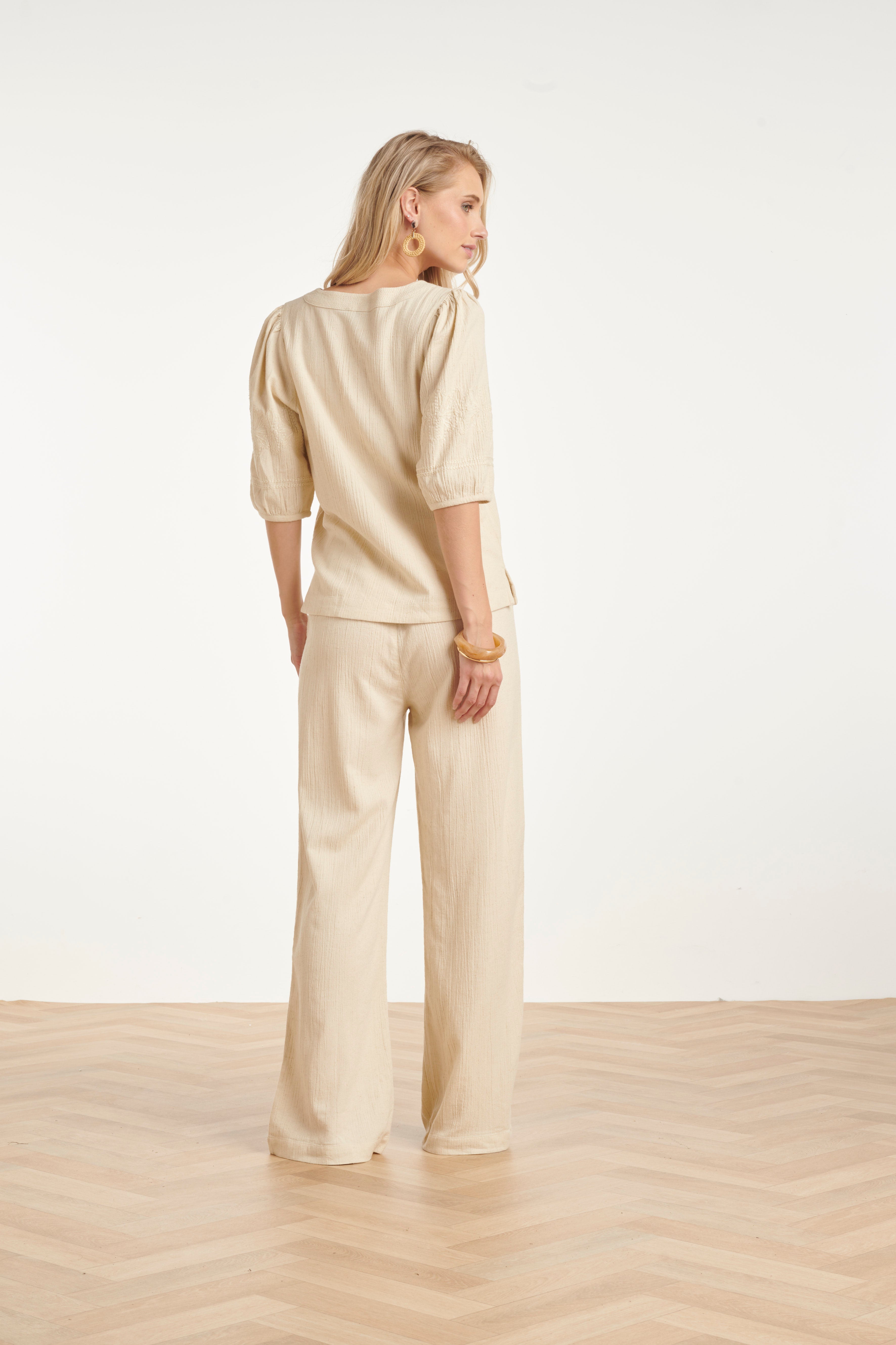 LInnen Look Wide Leg Broek in Crème Beige | Off White
