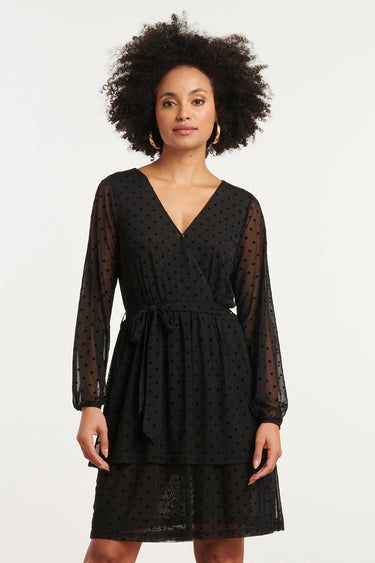 25763 – Smashed Lemon vestido de rede flock com pontos de veludo | Preto