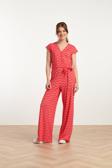 25039 Macacão em V com Decote Sobreposto e Estampa de Conchas | Vermelho - Rosa