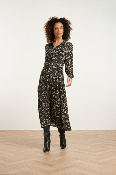 24762 Vestido Ajustado com Estampa de Folhas | Preto - Off White