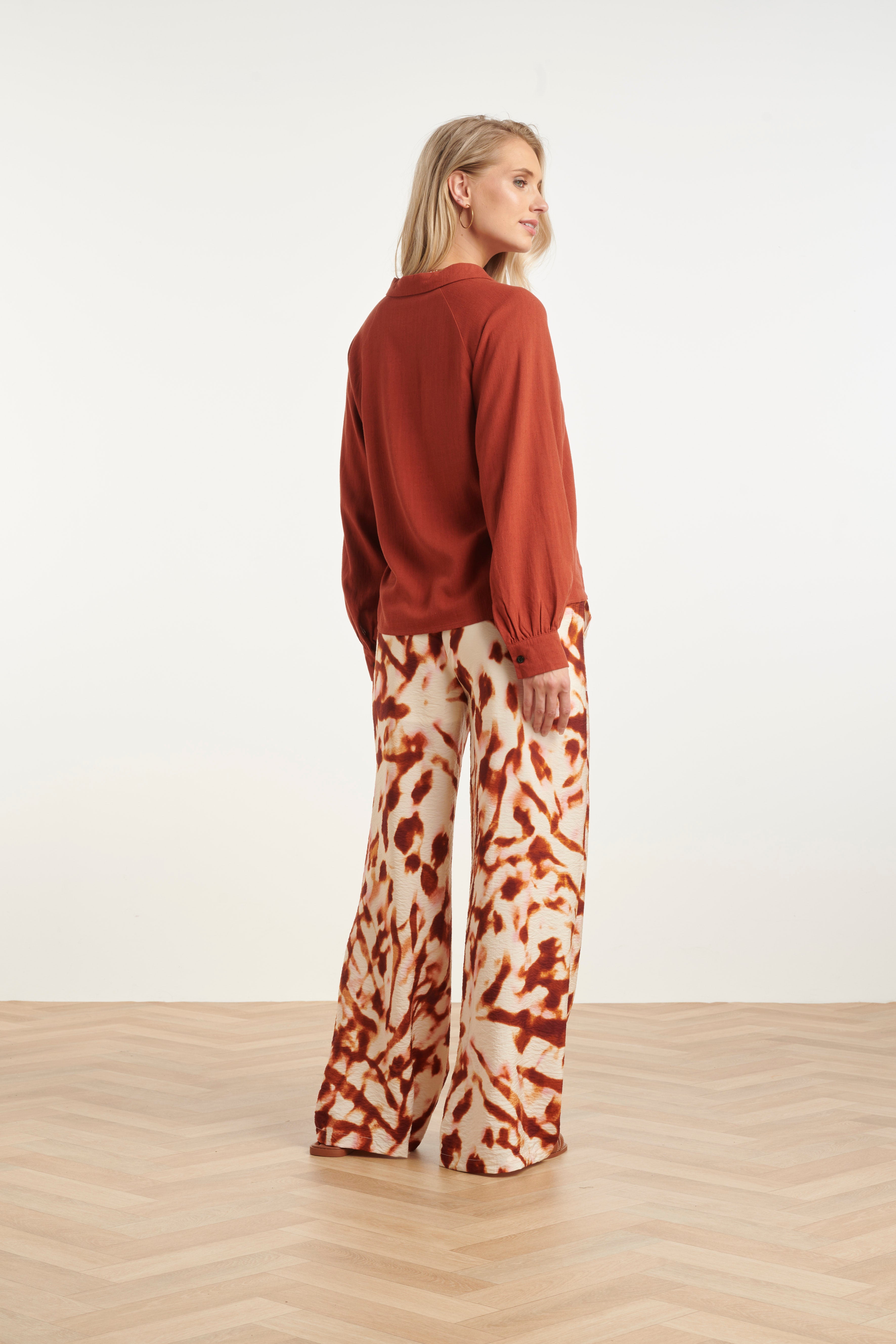 Calças largas com estampado estilo tie-dye em castanho e rosa | Brique - Multicolor