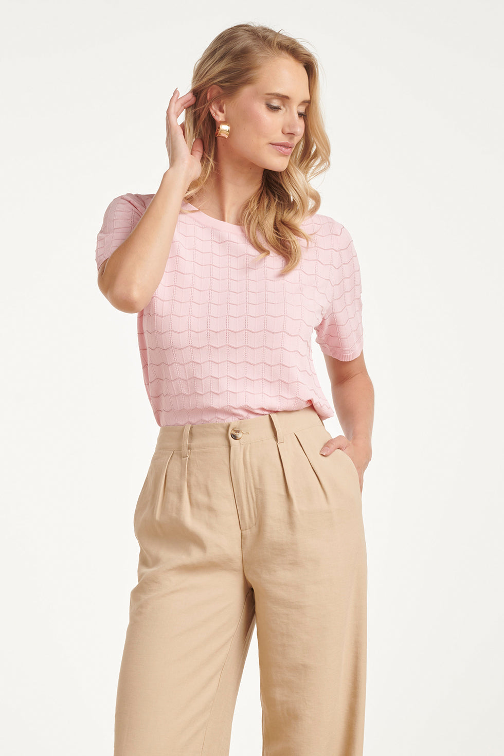 Gebreide Top Met Lurex Golvende Texture | Pink - Gold