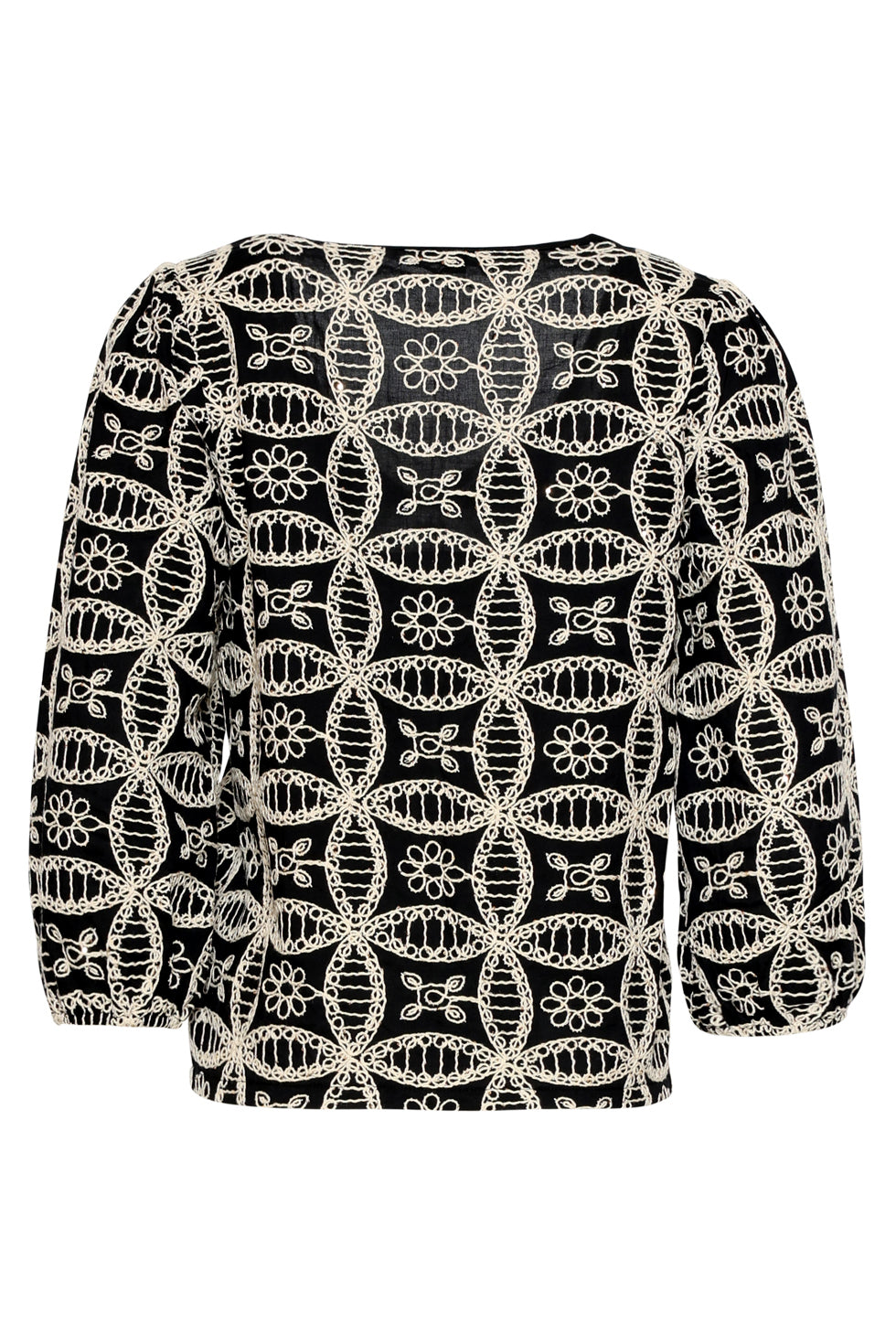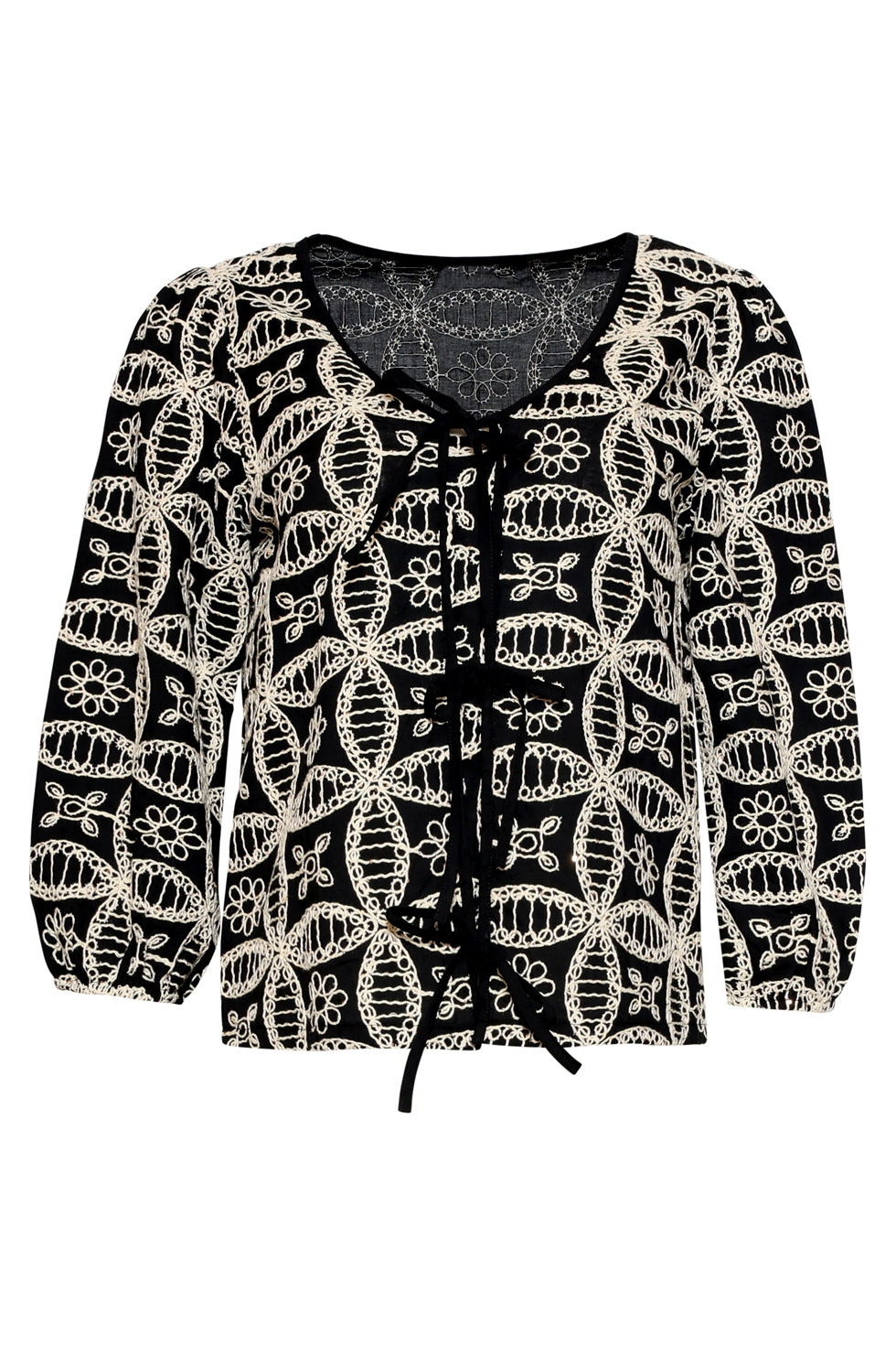 Top Boho com Bordado Rico e Fecho com Cordões | Black - Off White