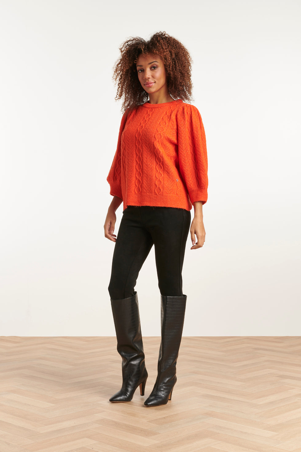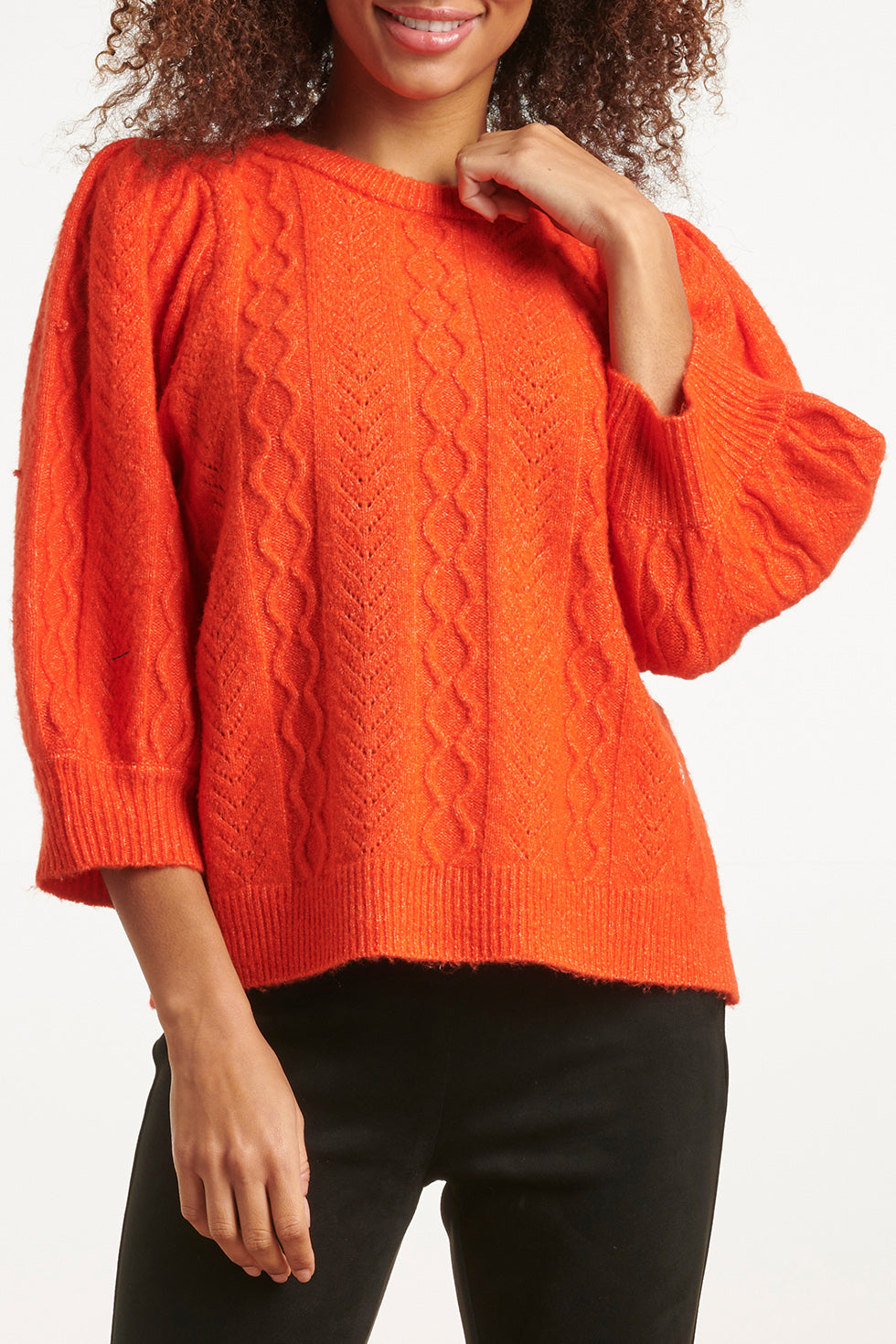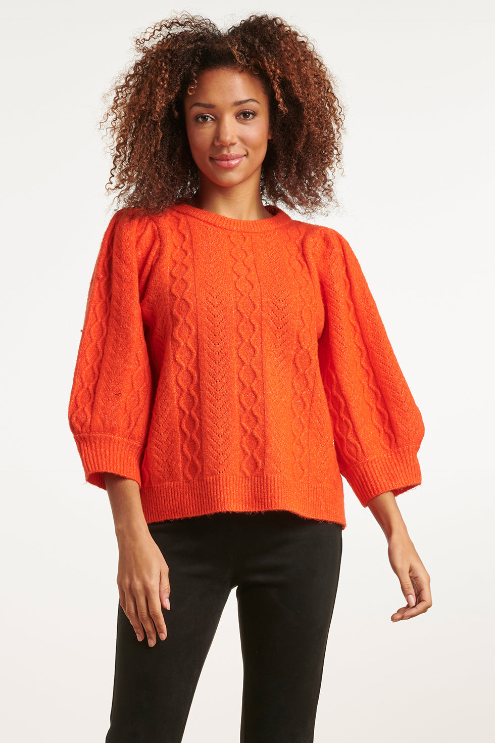 23612 Top de Malha Estruturada com Mangas Bufantes Fel | Laranja