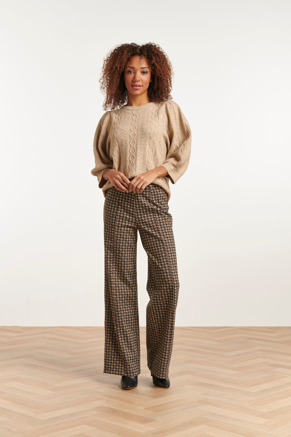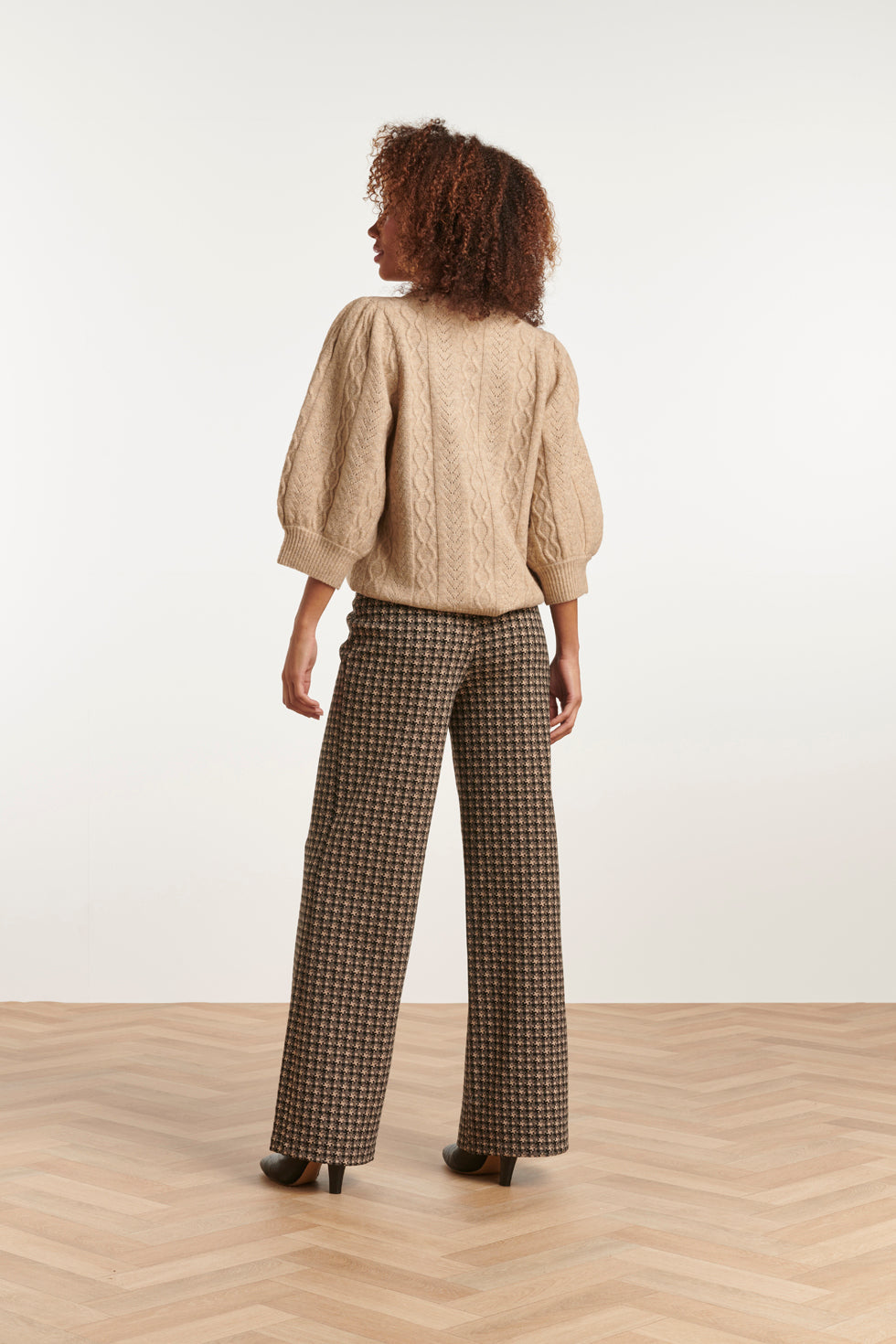 23612 Gestructureerde Gebreide Top Met Pofmouwen | Sand