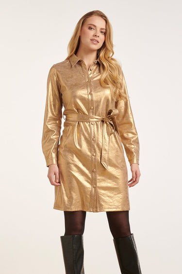 24733 Gecoate Suedine Jurk | Gold