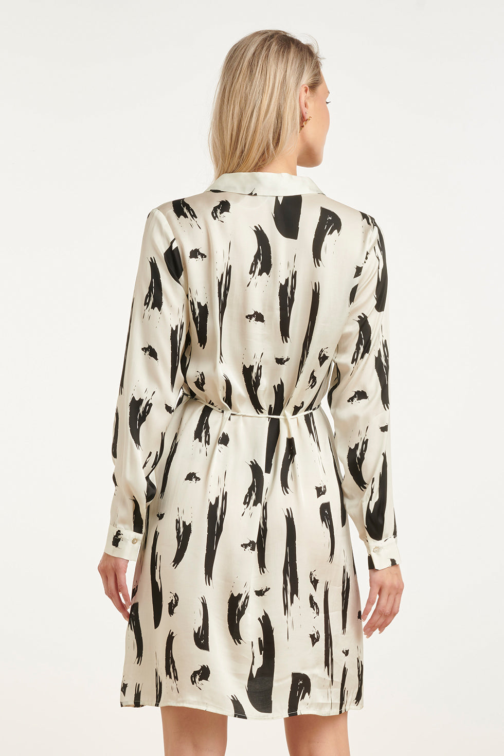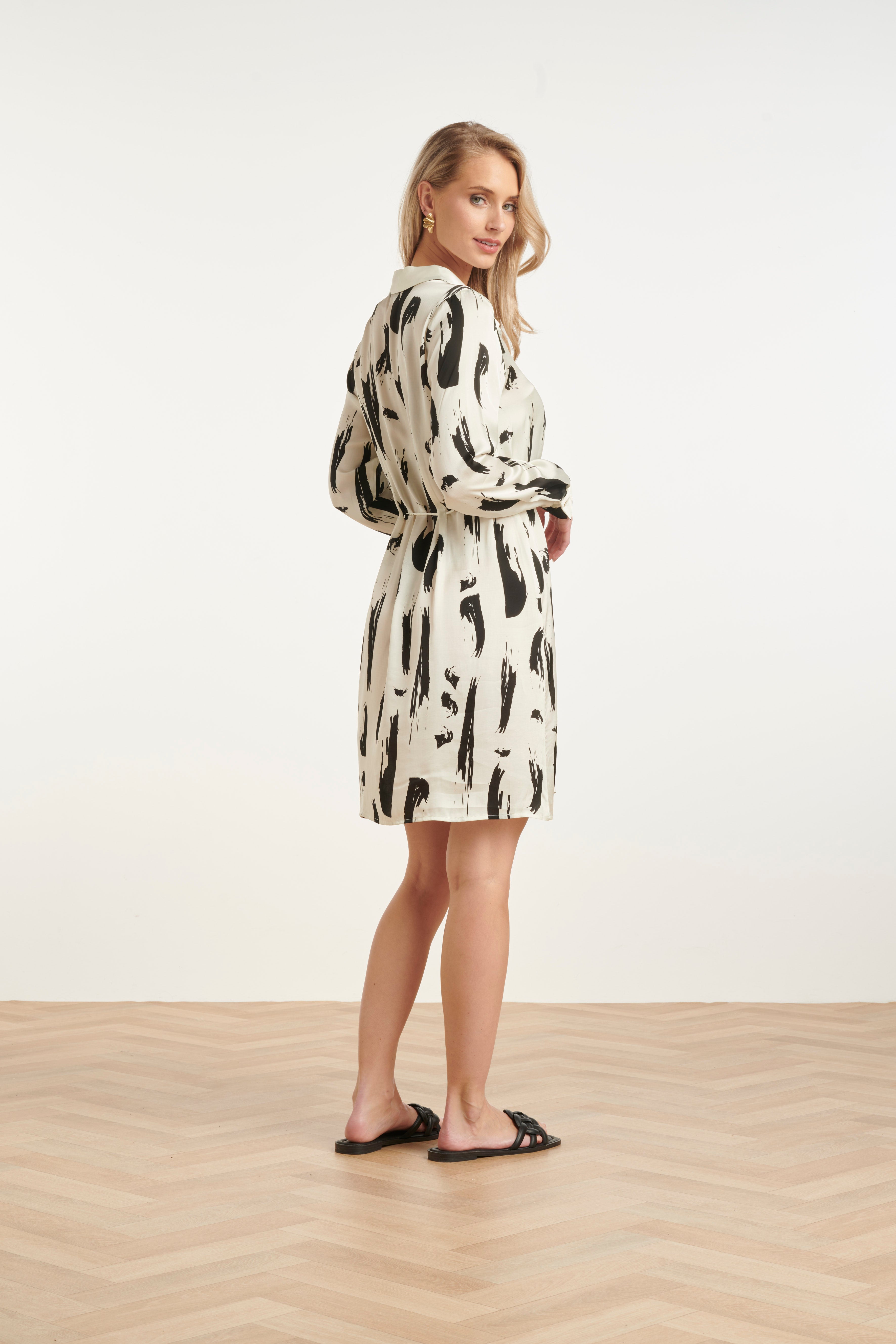 Doorknoopjurk Met Zwart-Witte Abstracte Print | Off White - Black